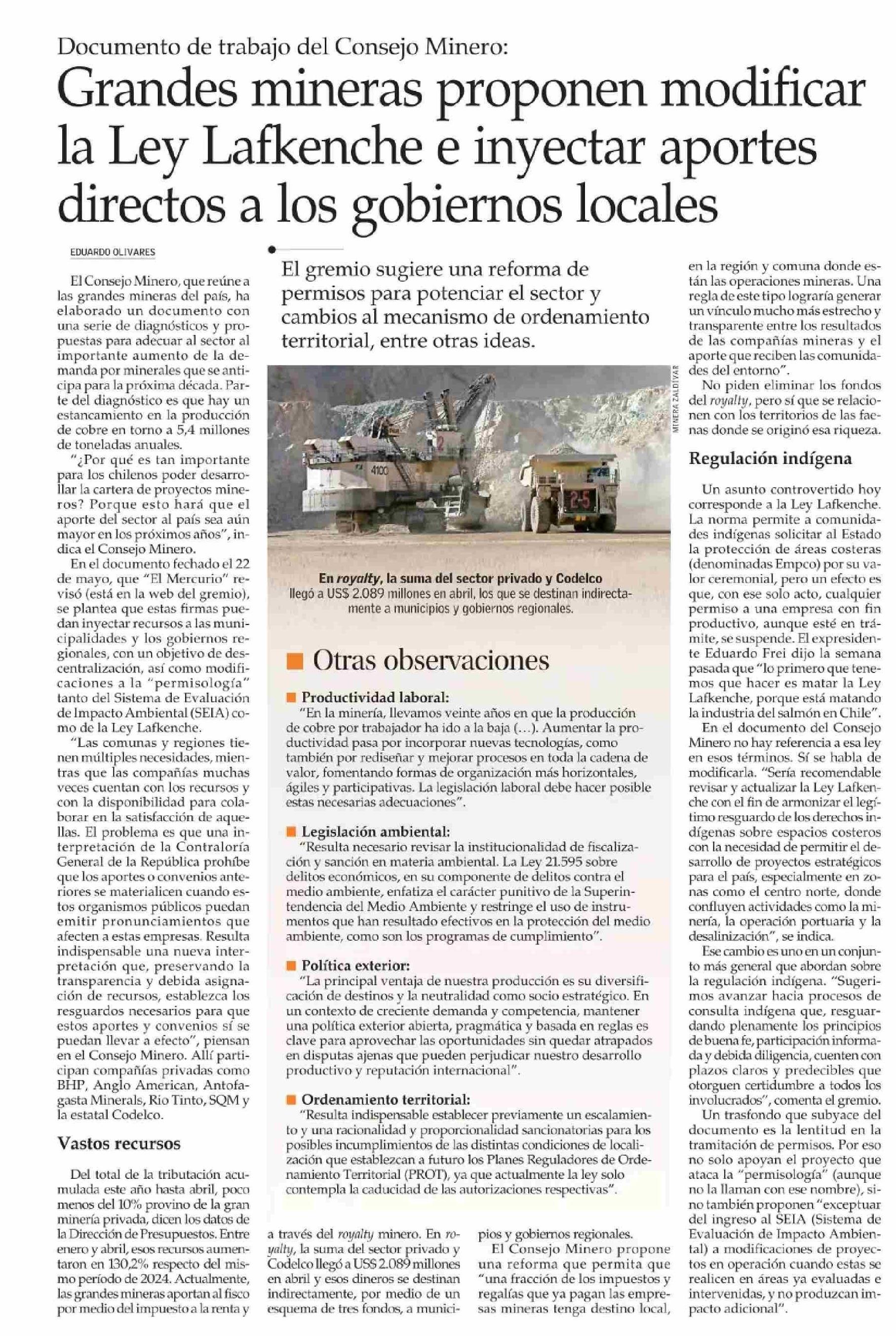 Grandes mineras proponen modificar la Ley Lafkenche e inyectar aportes directos a los gobiernos locales