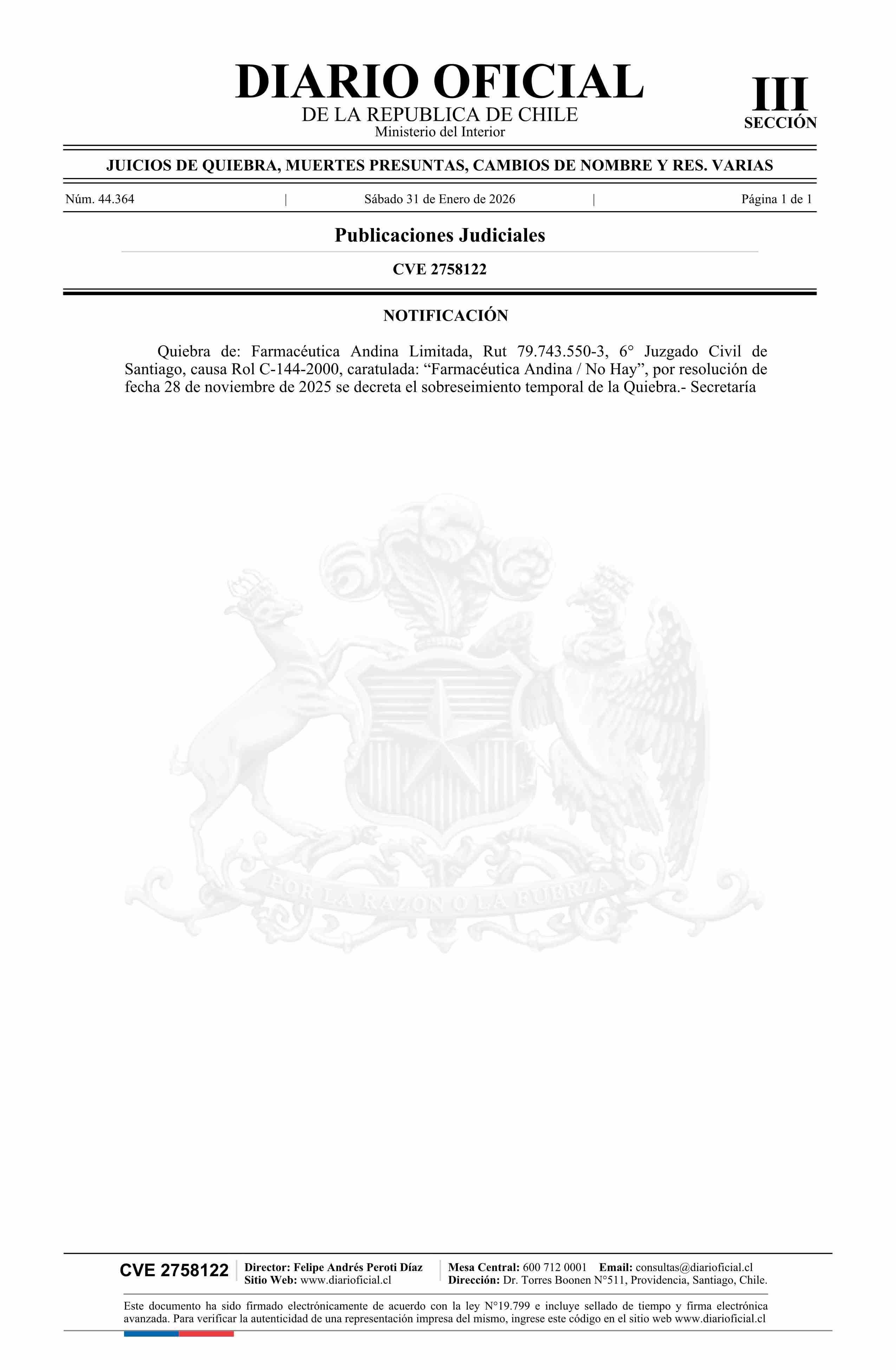 Diario Oficial Edición Electrónica (Diario Oficial de Chile - 3 Public. Judiciales)