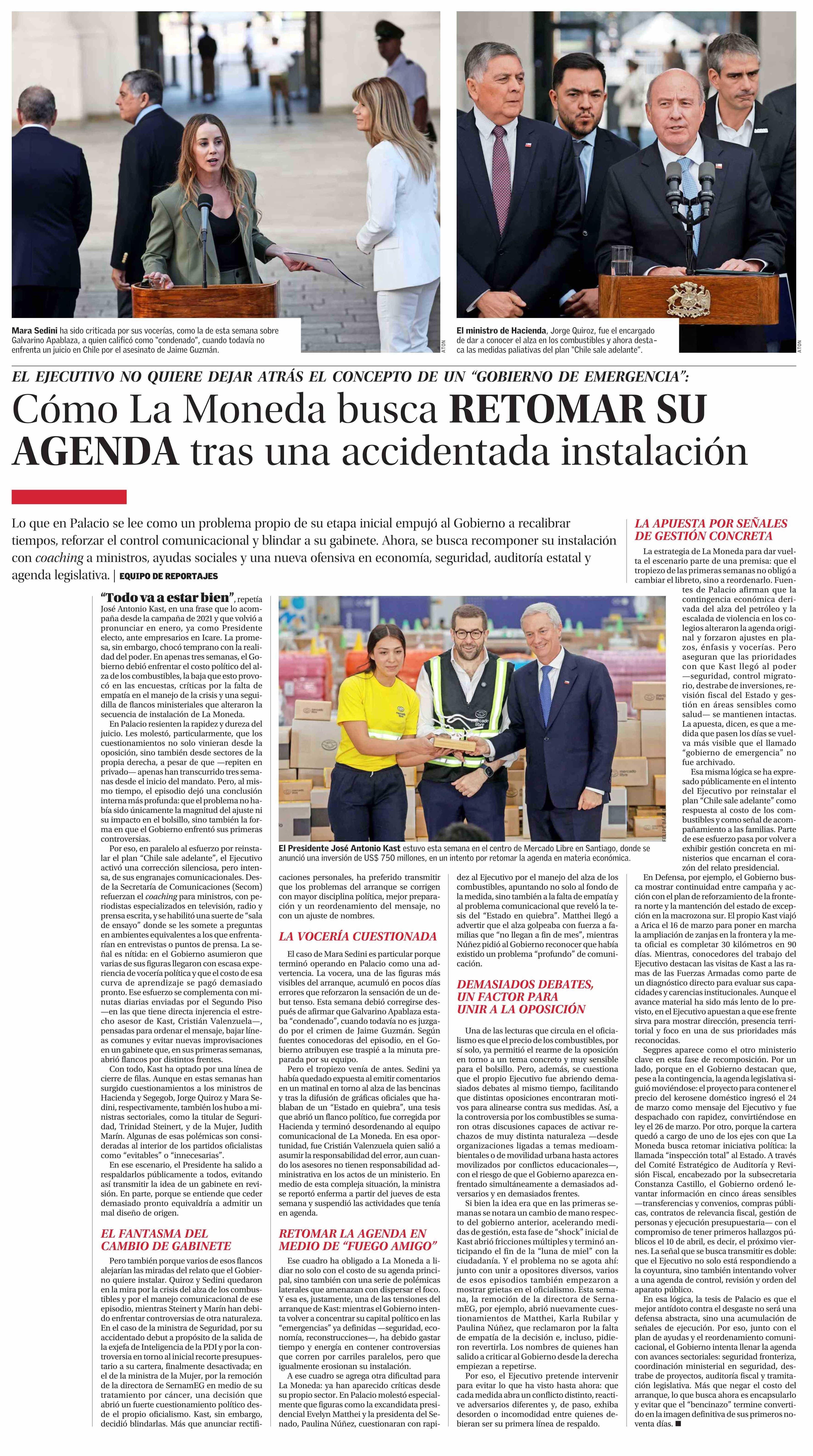 Cómo La Moneda busca RETOMAR SU AGENDA tras una accidentada instalación