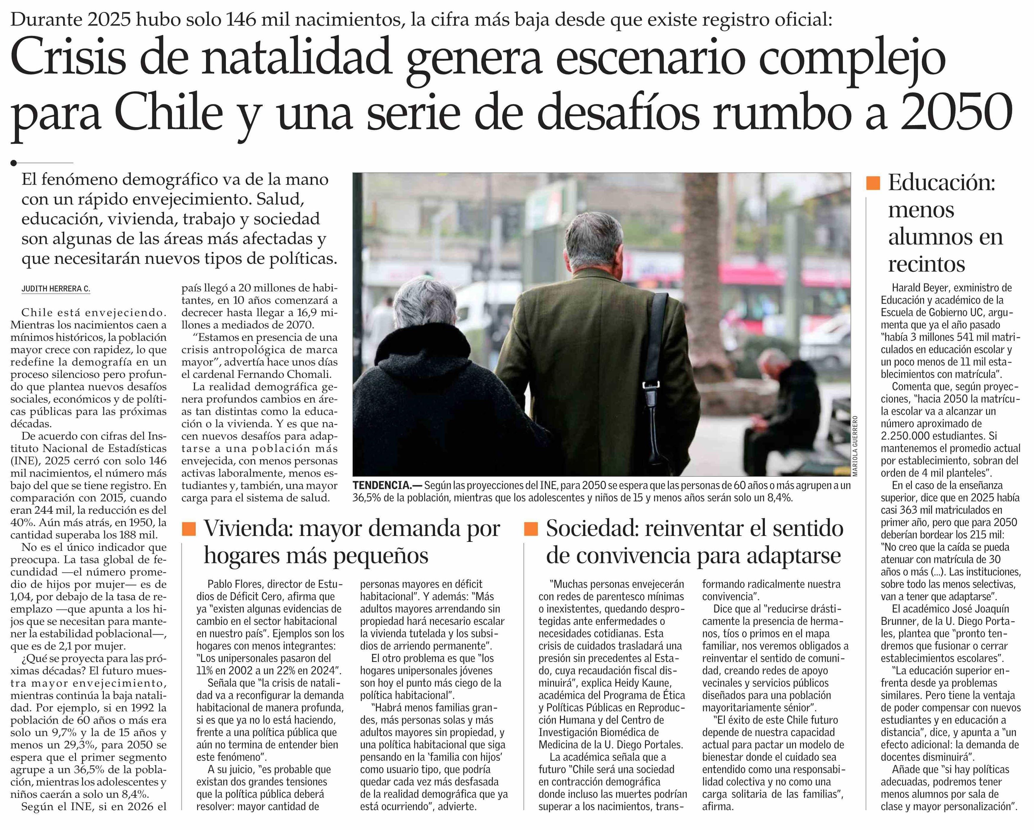 Crisis de natalidad genera escenario complejo para Chile y una serie de desafíos rumbo a 2050