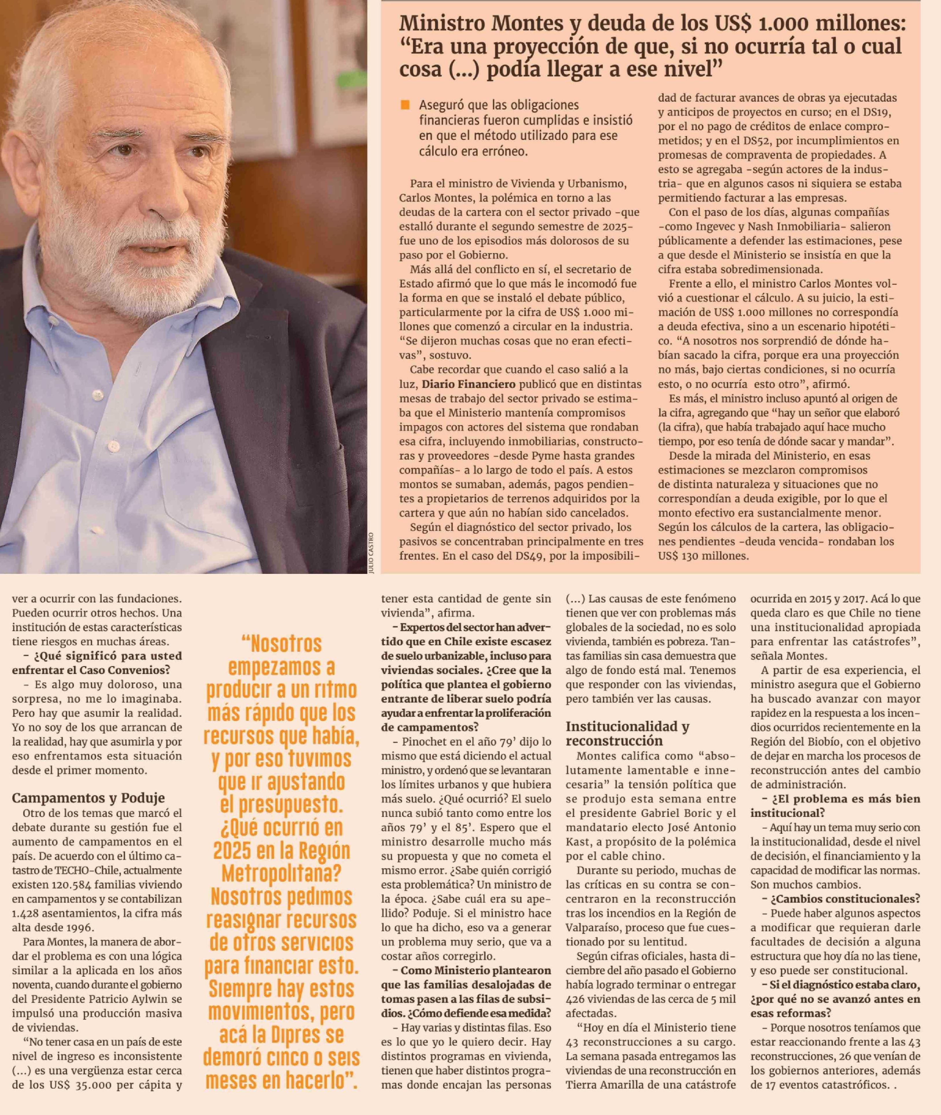 Título: "Es una vergüenza estar cerca de los USS 35.000 per cápita y tener esta cantidad de gente sin vivienda