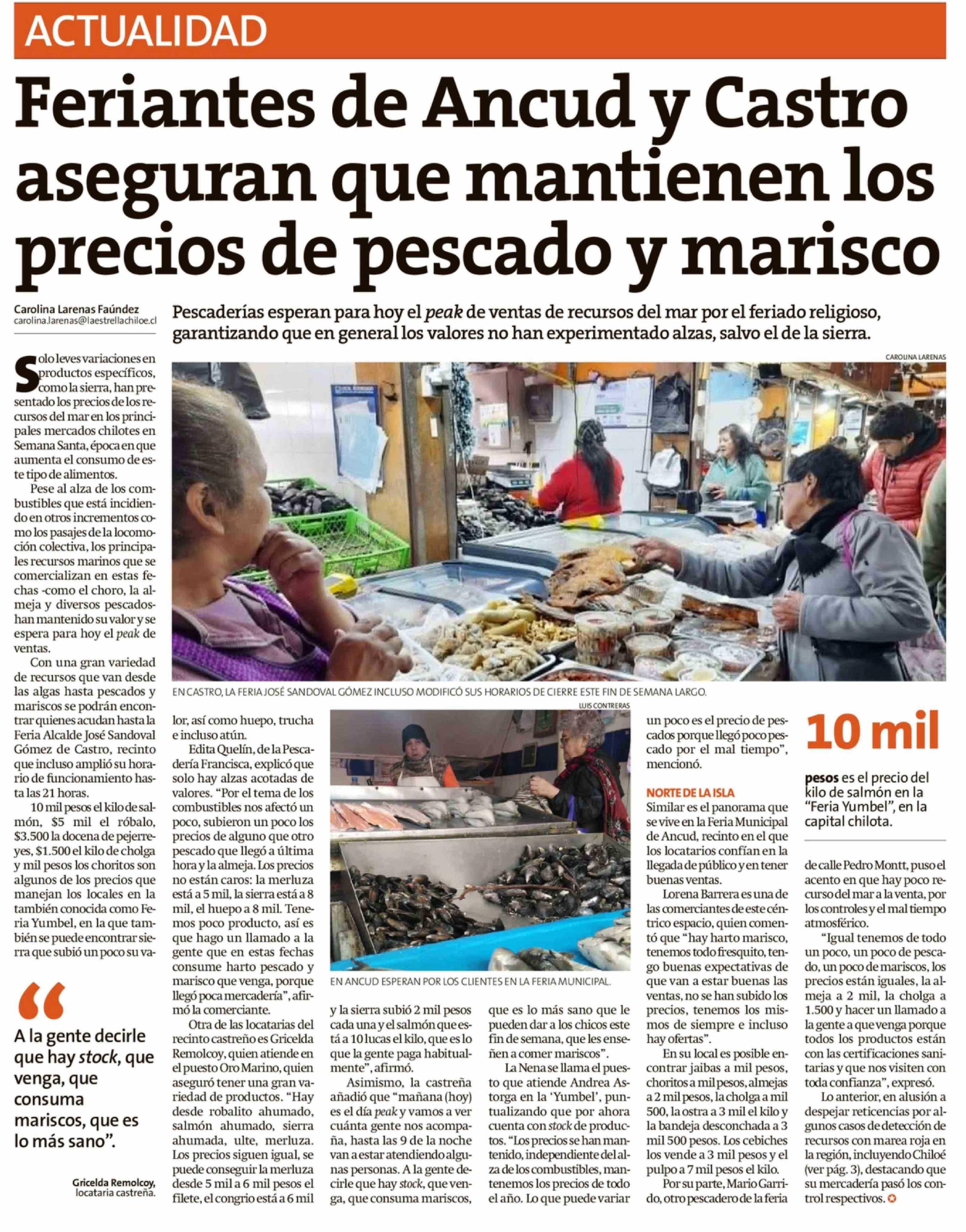 Feriantes de Ancud y Castro aseguran que mantienen los precios de pescado y marisco