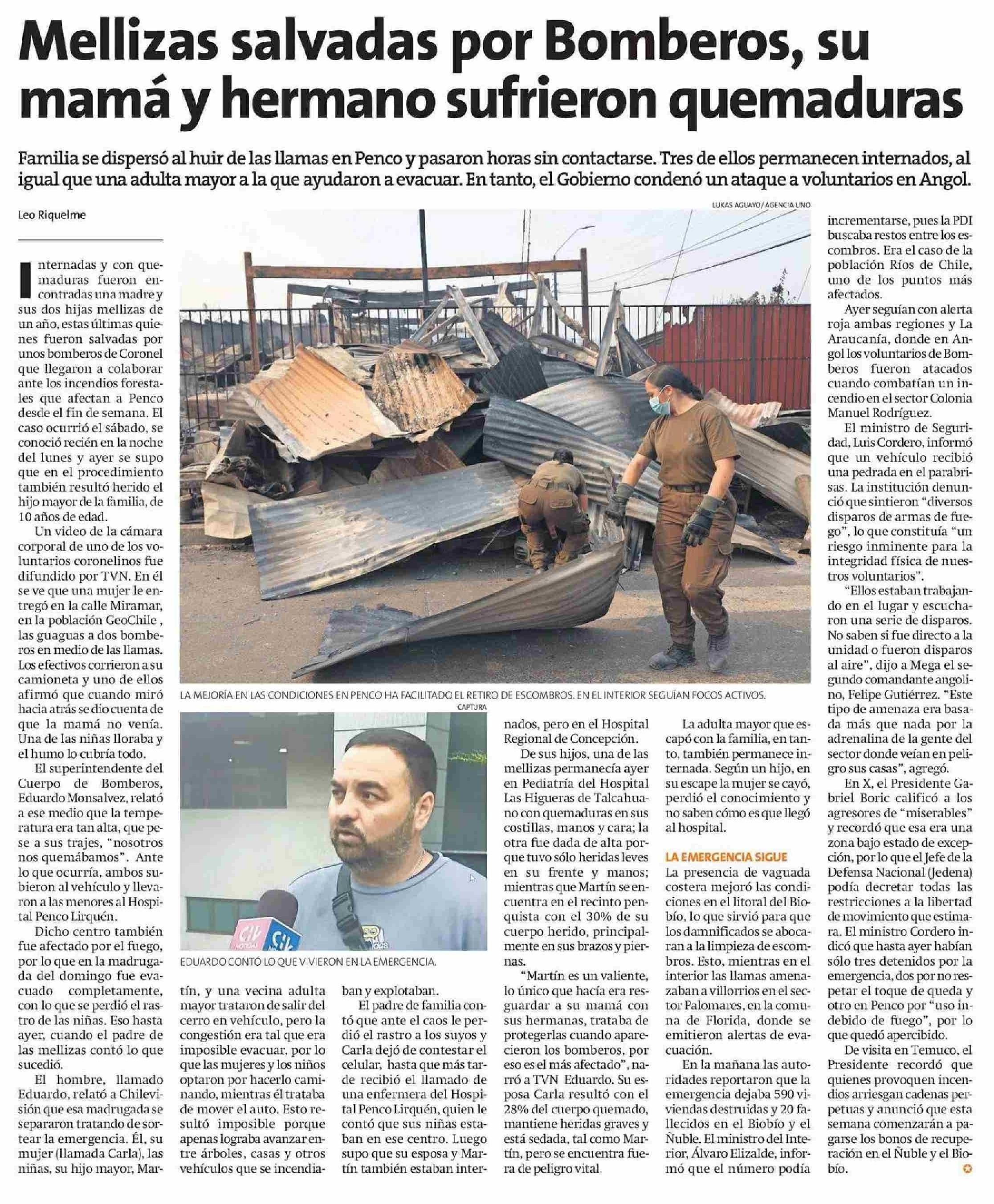 Mellizas salvadas por Bomberos, su mamá y hermano sufrieron quemaduras