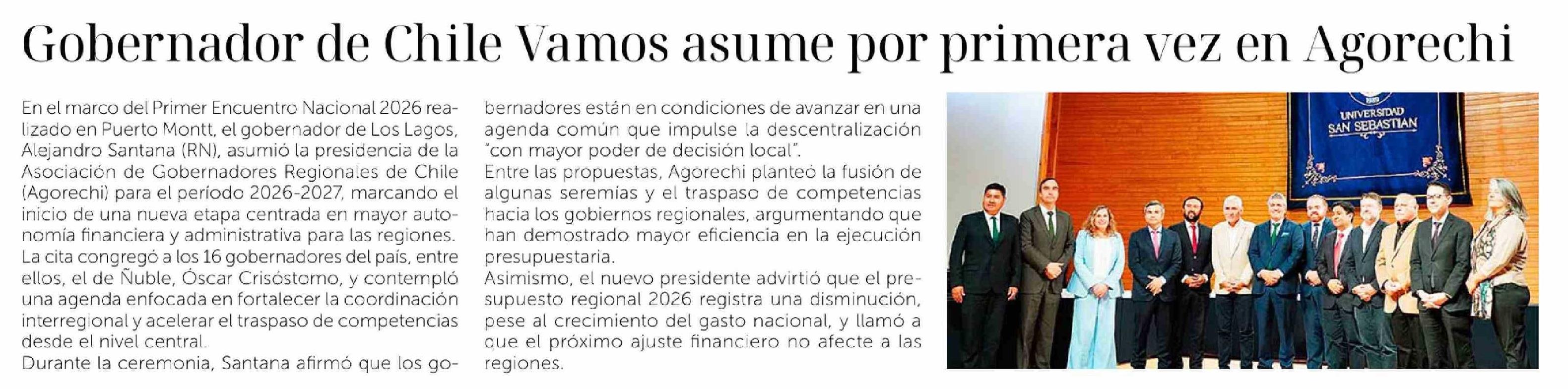 Gobernador de Chile Vamos asume por primera vez en Agorechi