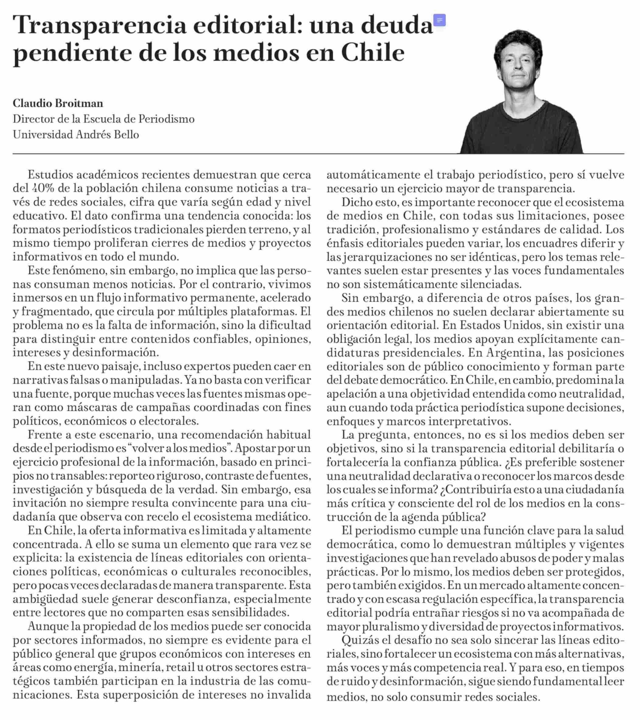 Columnas de Opinión: Transparencia editorial: una deuda pendiente de los medios en Chile