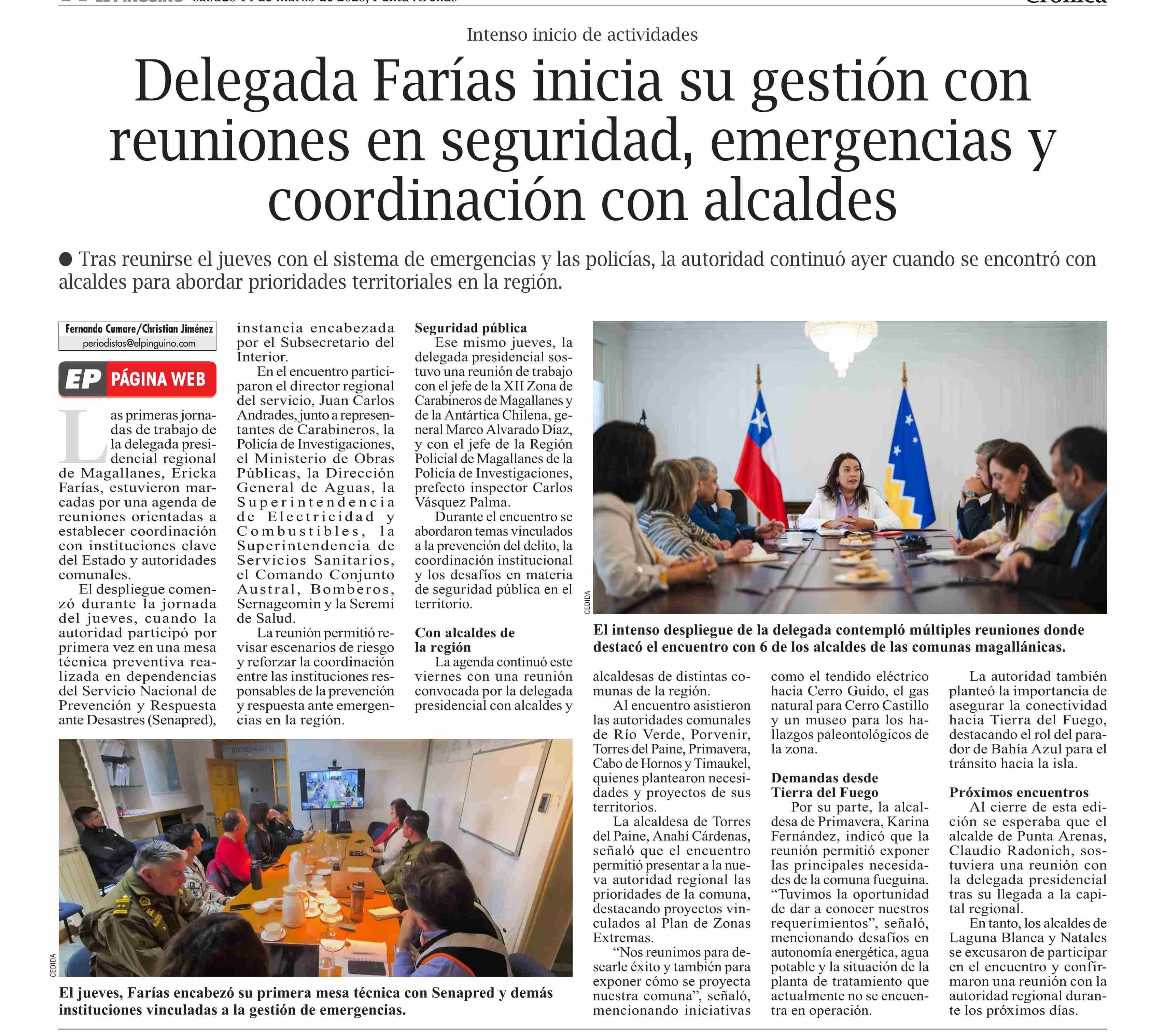 Delegada Farías inicia su gestión con reuniones en seguridad, emergencias y coordinación con alcaldes