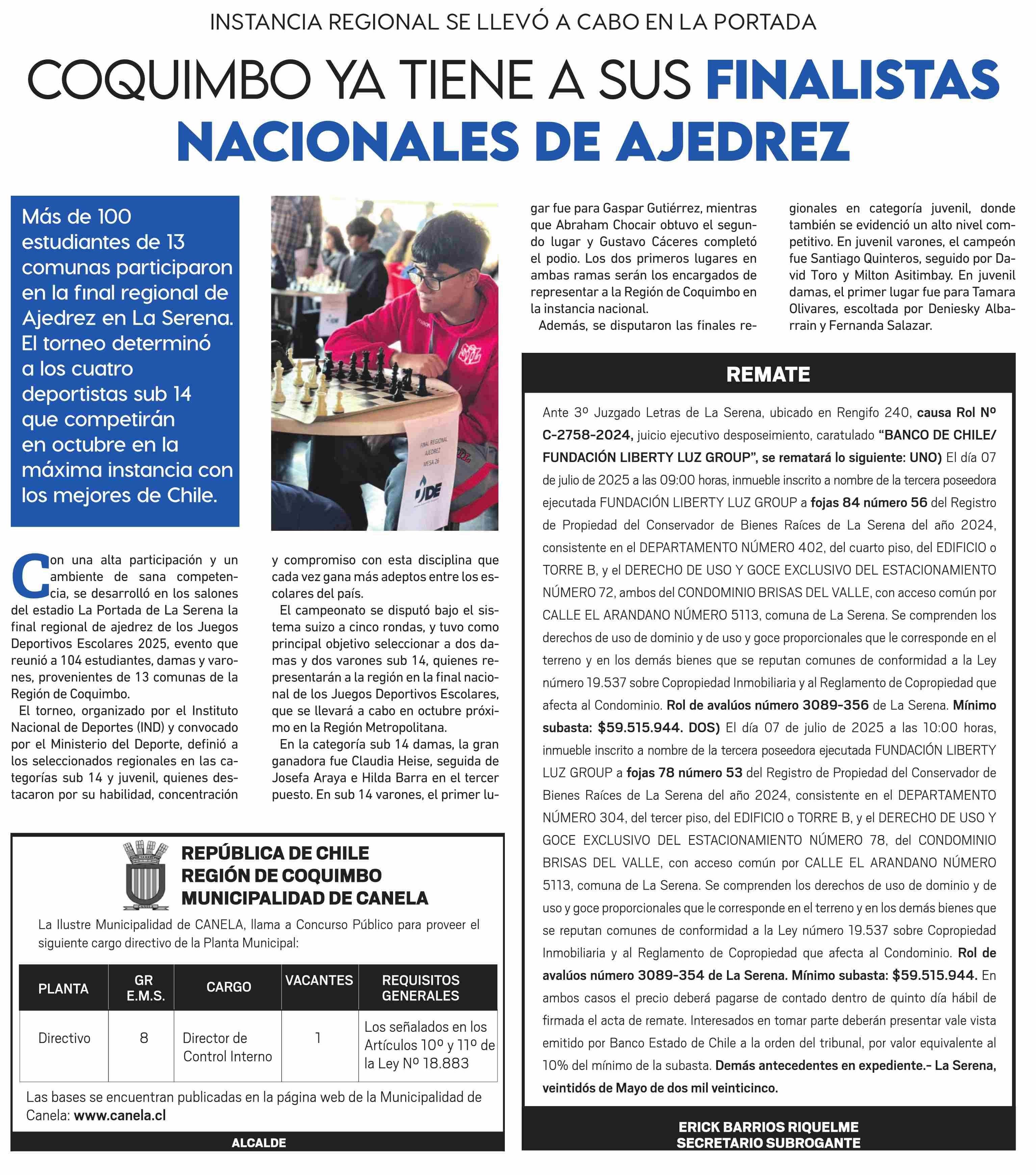 Coquimbo ya tiene a sus finalistas nacionales de ajedrez