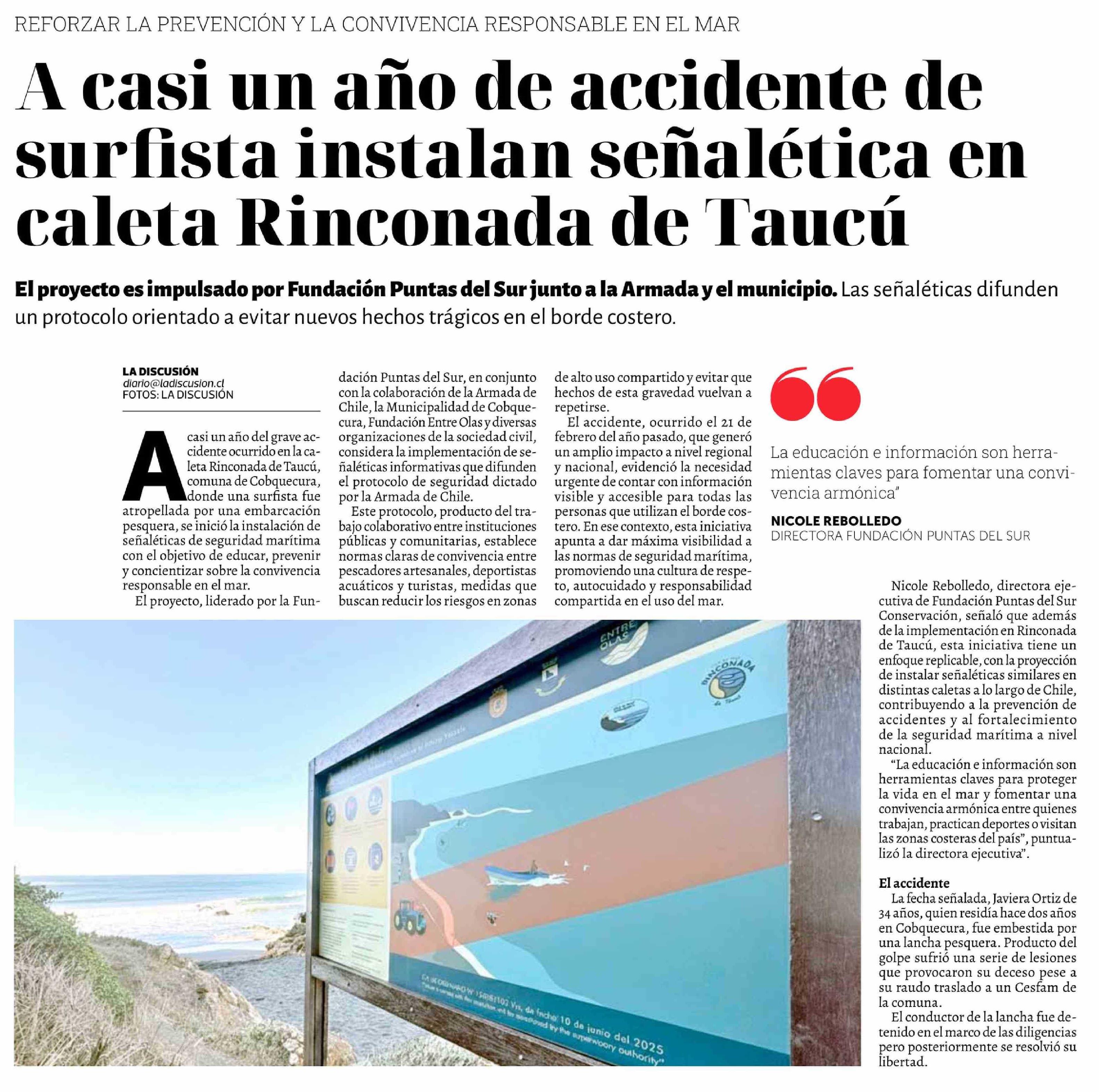 A casi un año de accidente de surfista instalan señalética en caleta Rinconada de Taucú