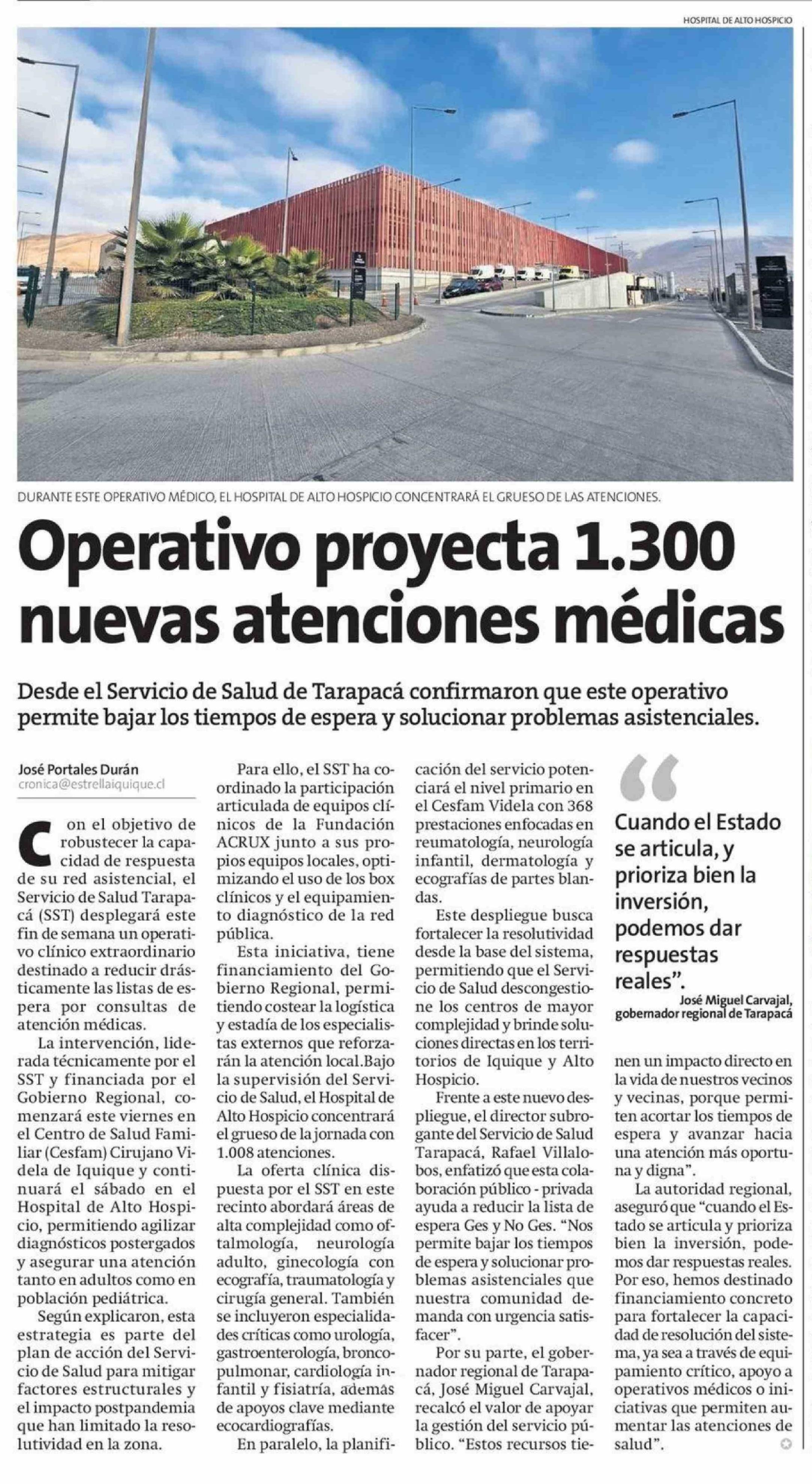 Operativo proyecta 1.300 nuevas atenciones médicas