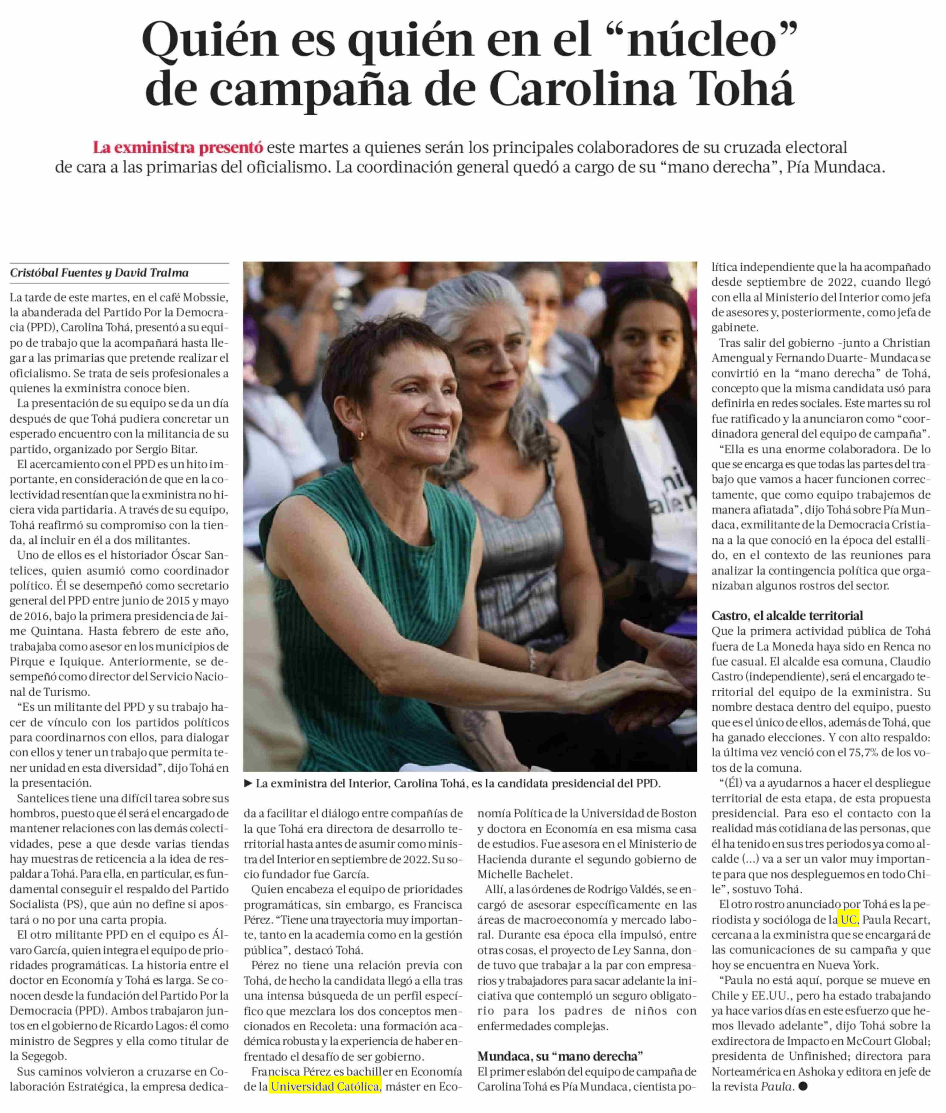 Quién es quién en el “núcleo” de campaña de Carolina Tohá