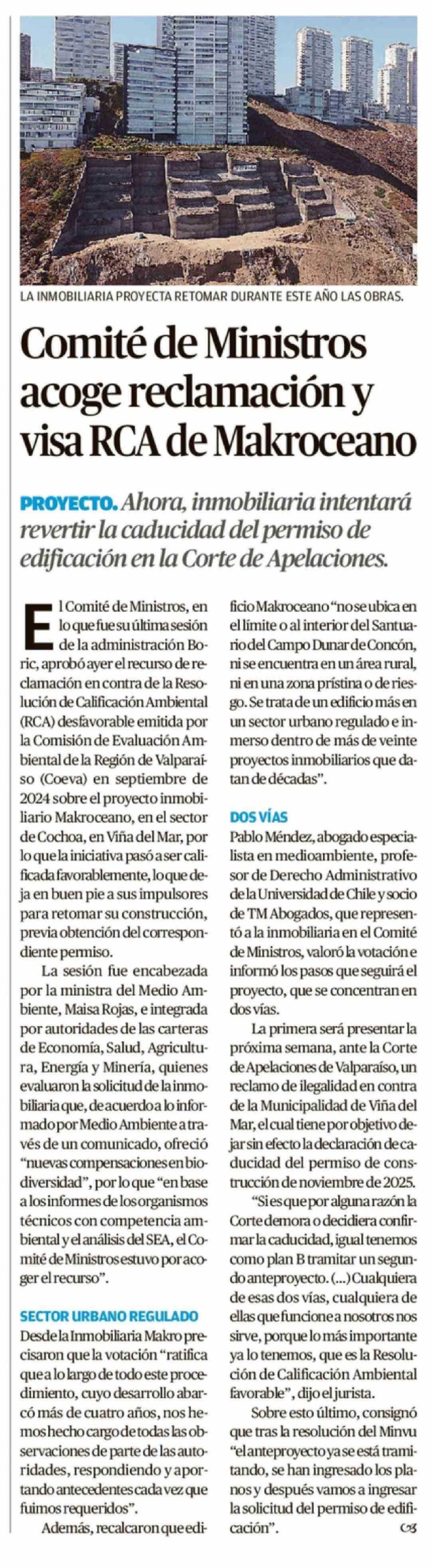 Comité de Ministros acoge reclamación y visa RCA de Makroceano