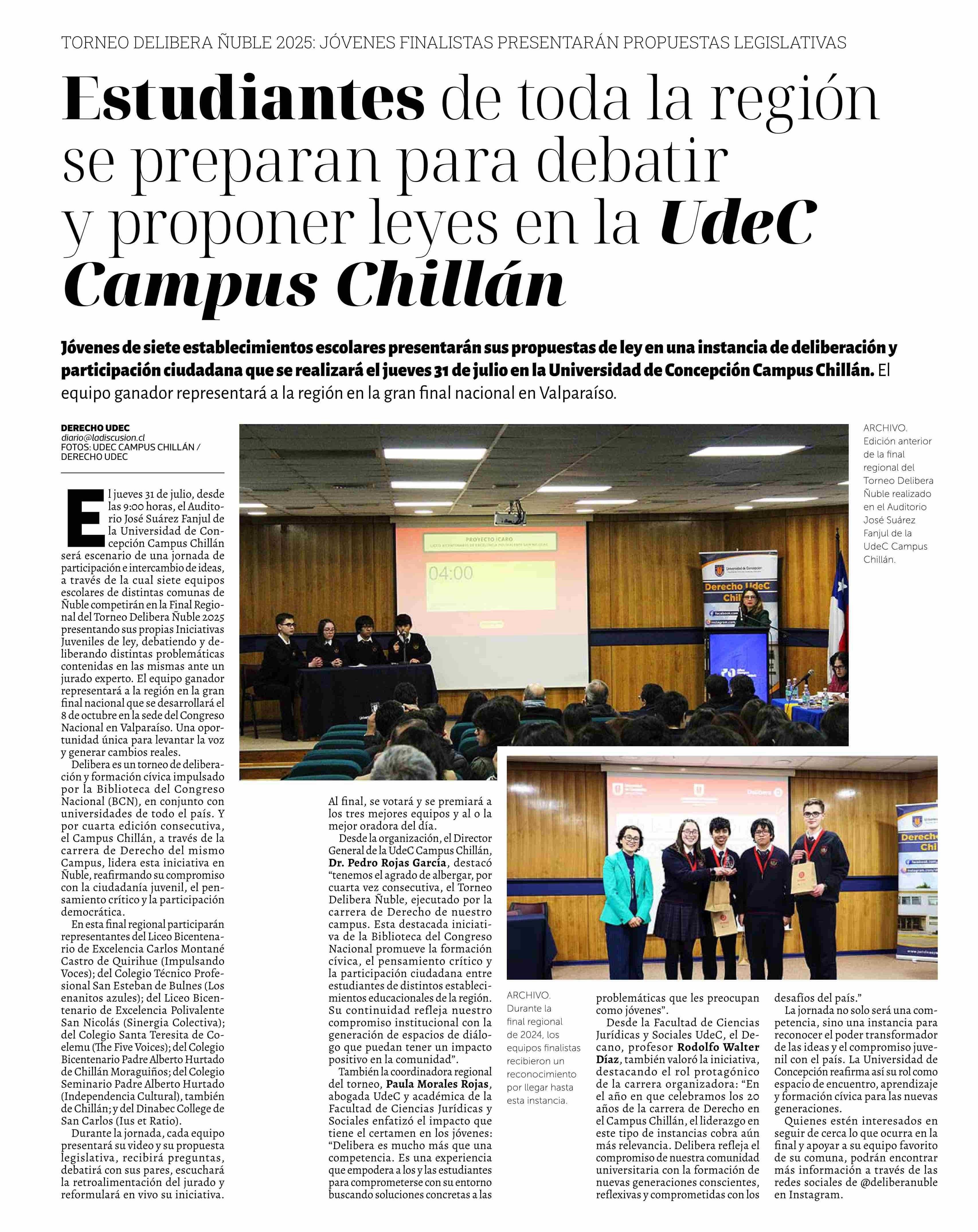 Estudiantes de toda la región se preparan para debatir y proponer leyes en la UdeC Campus Chillán