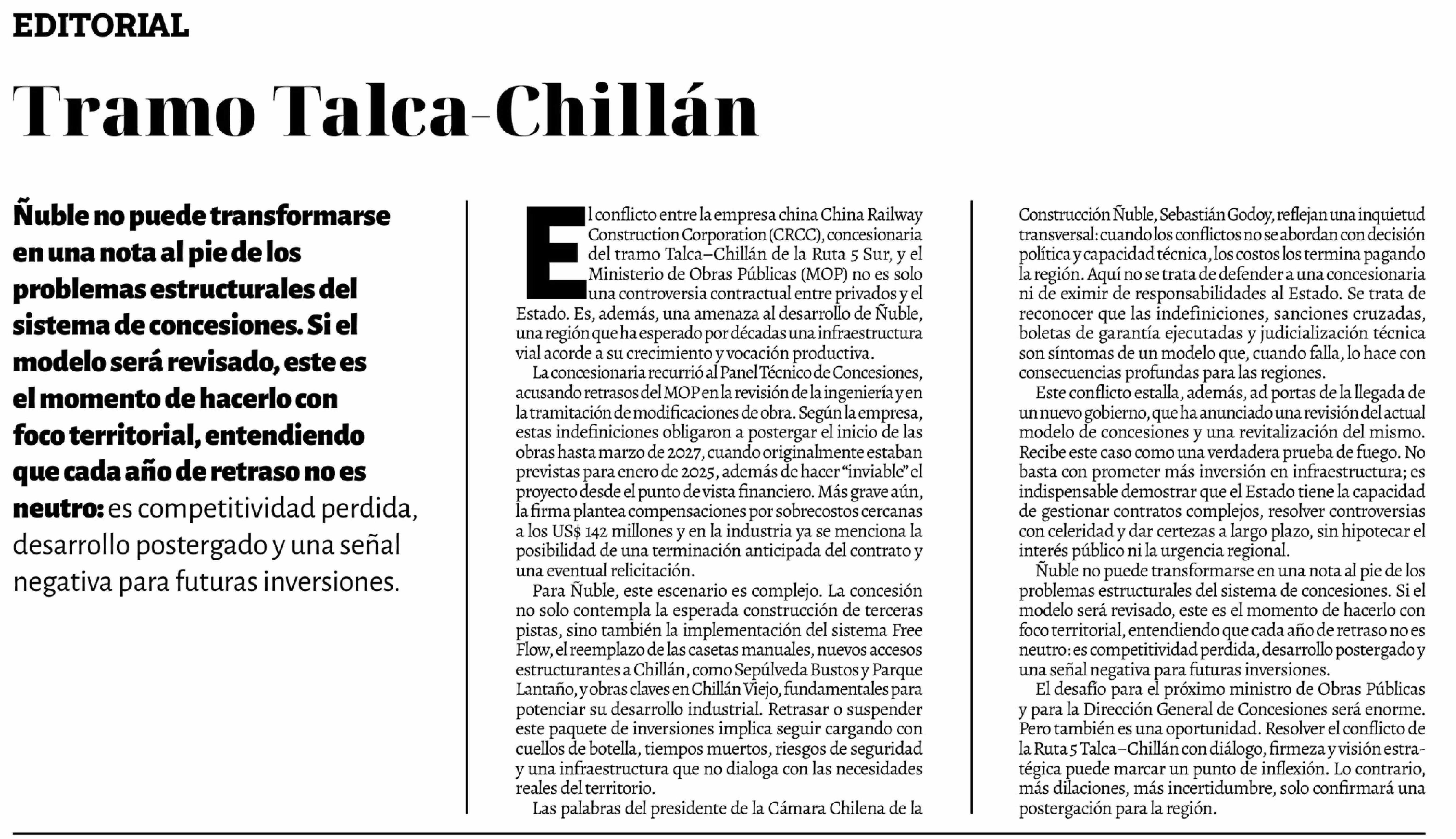 Editorial: Tramo Talca-Chillán