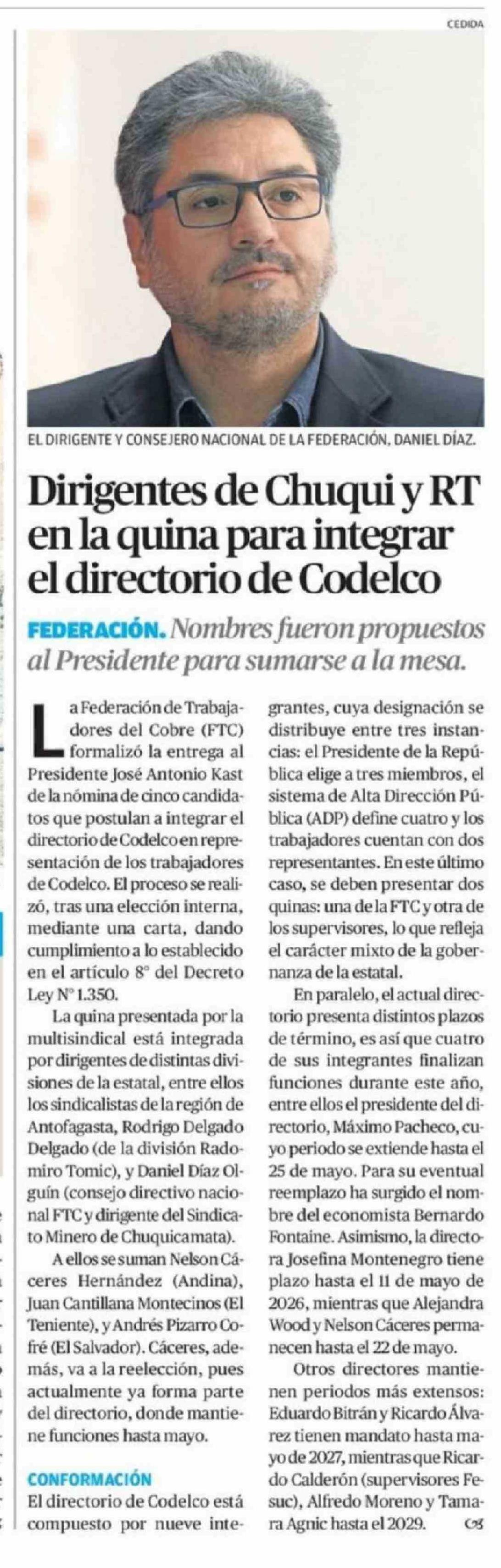 Dirigentes de Chuqui y RT en la quina para integrar el directorio de Codelco