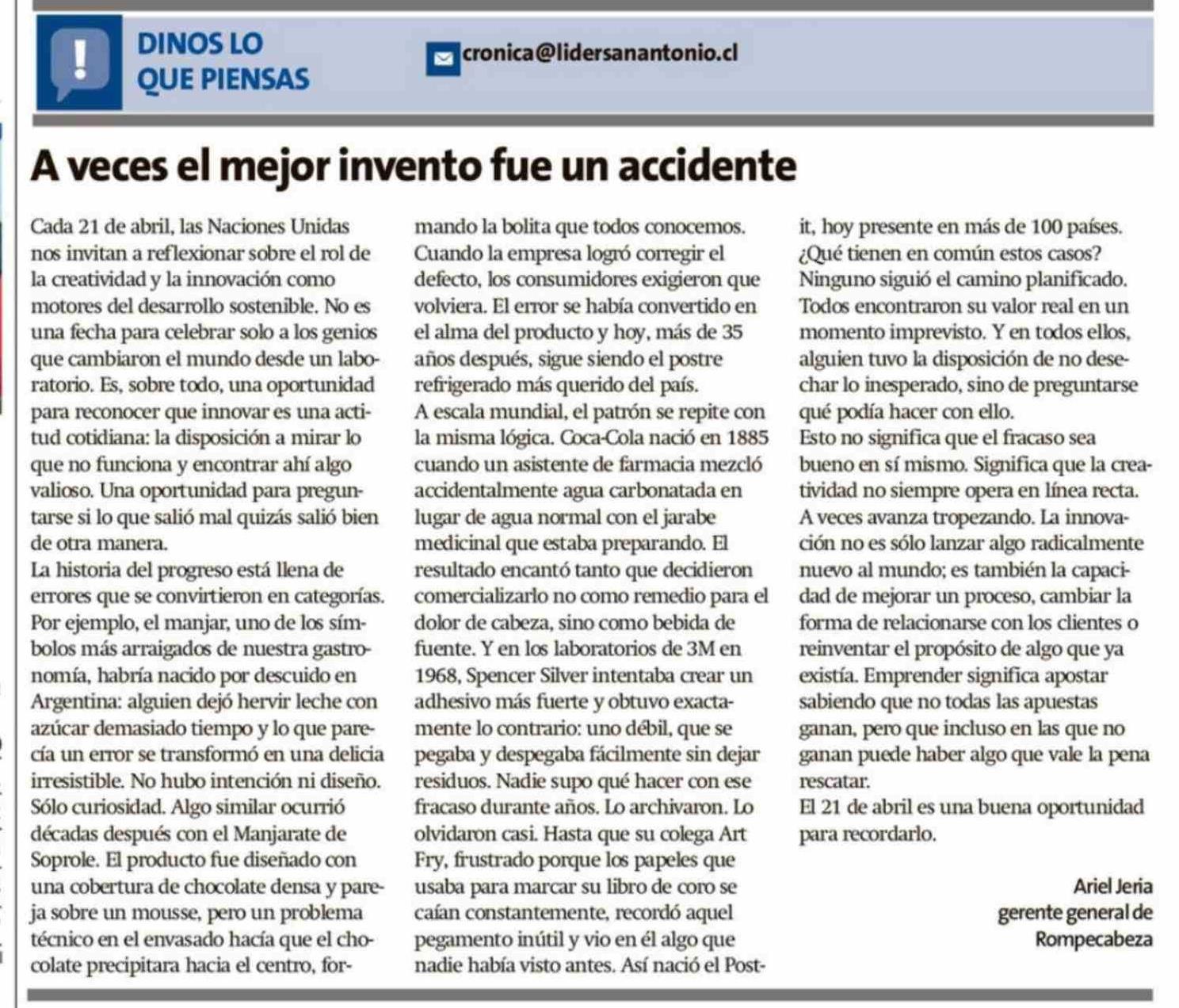 Título: Cartas: A veces el mejor invento fue un accidente