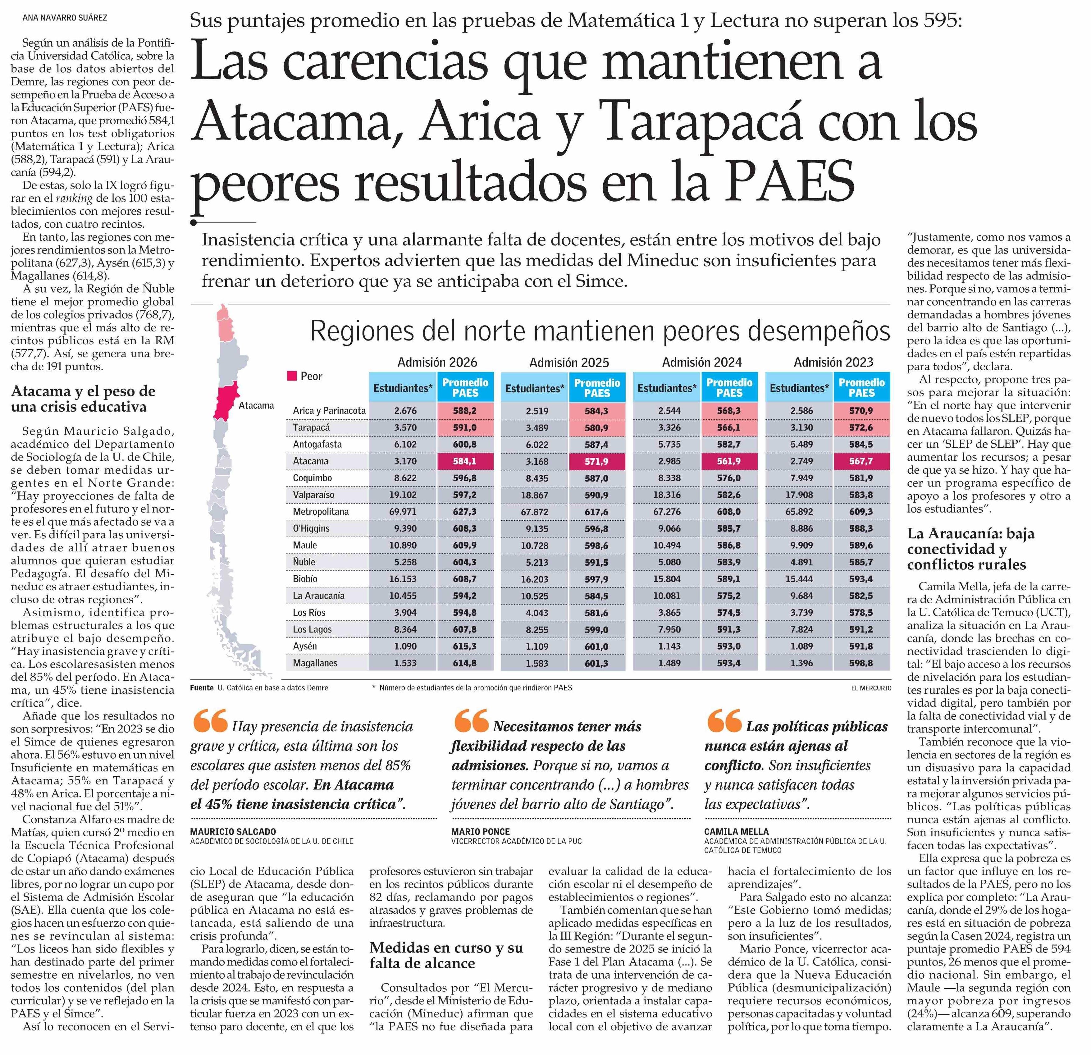 Título: Las carencias que mantienen a Atacama, Arica y Tarapacá con los peores resultados en la PAES