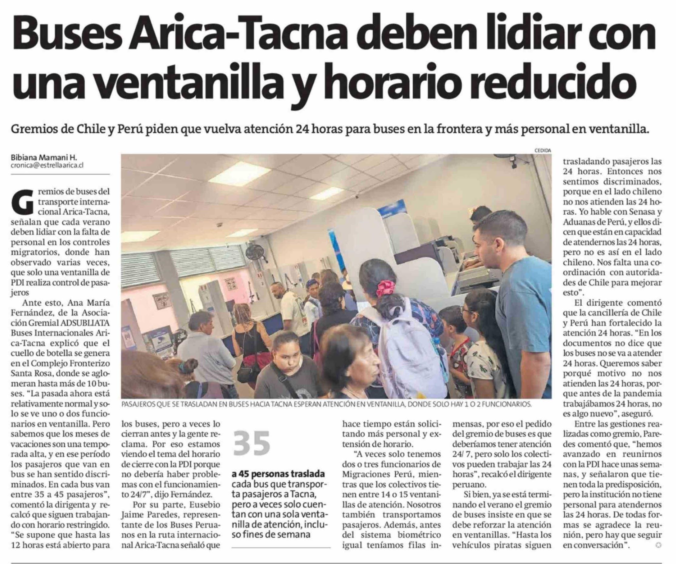Buses Arica-Tacna deben lidiar con una ventanilla y horario reducido