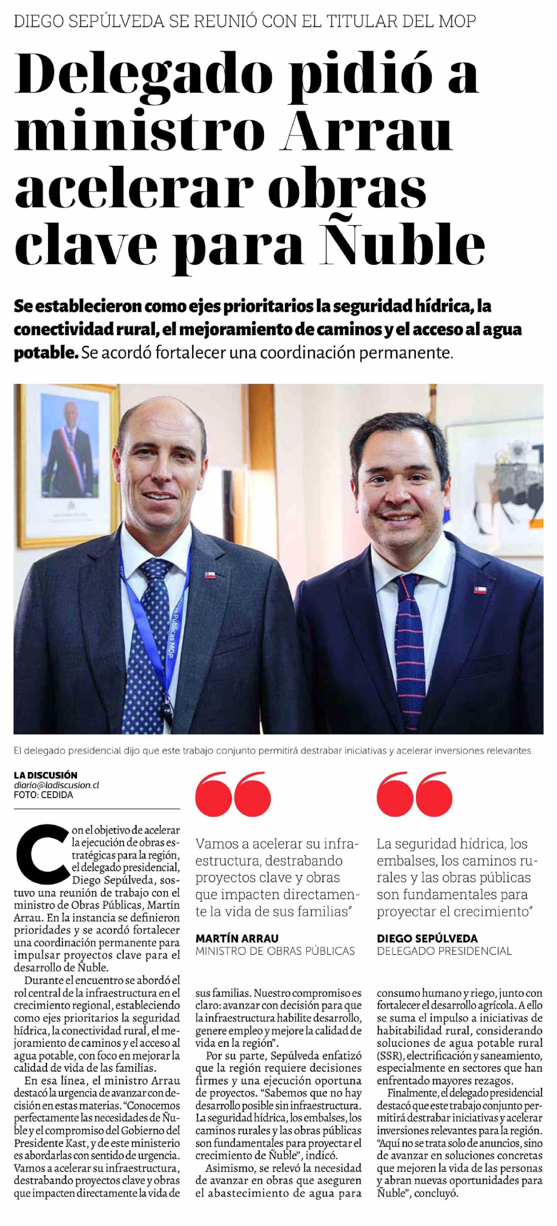 Delegado pidió a ministro Arrau acelerar obras clave para Nuble