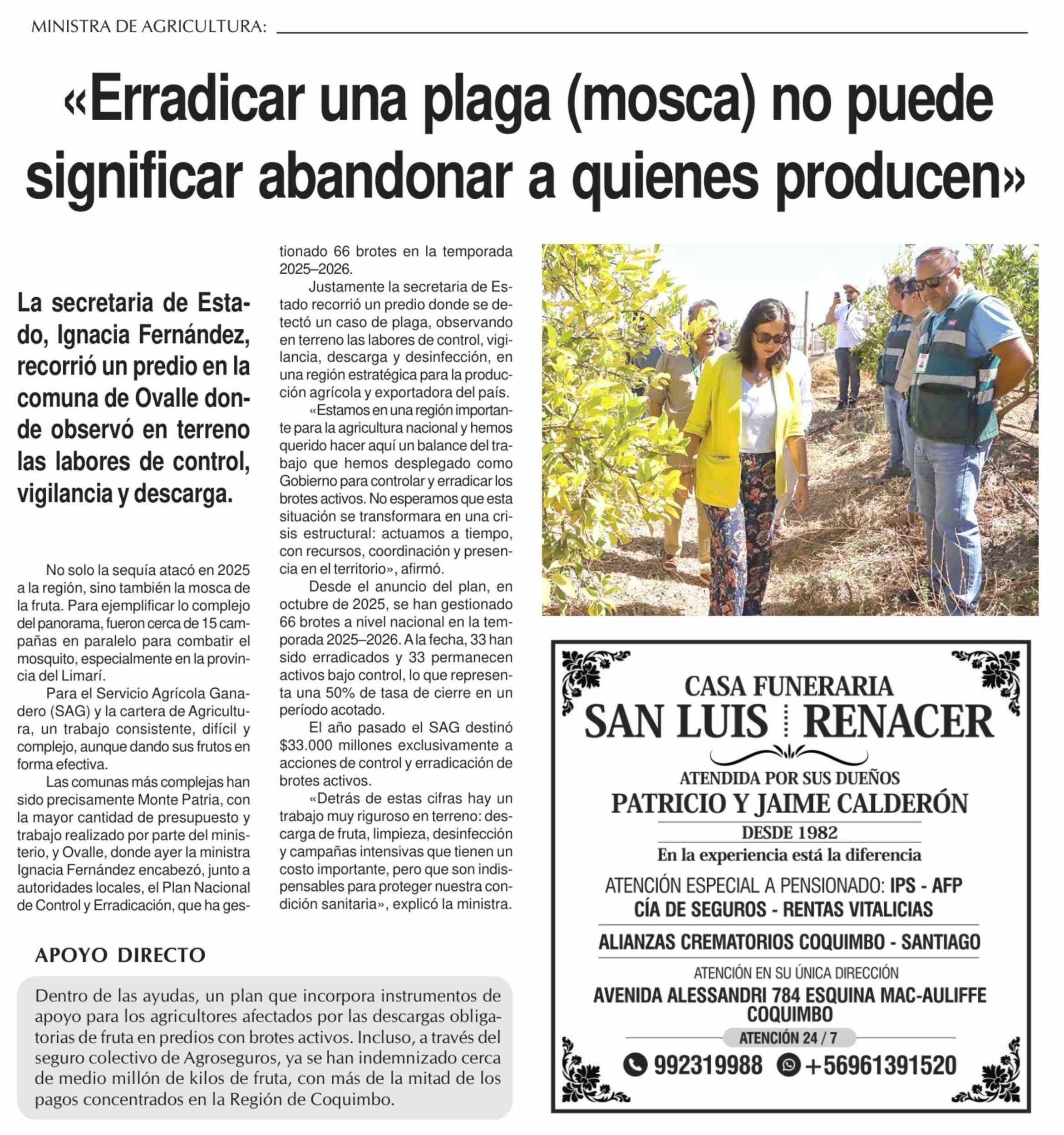 «Erradicar una plaga (mosca) no puede significar abandonar a quienes producen»