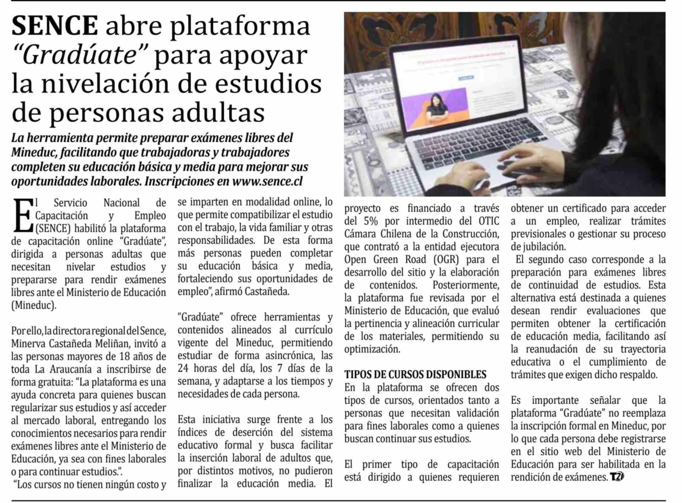 SENCE abre plataforma "Gradúate" para apoyar la nivelación de estudios de personas adultas