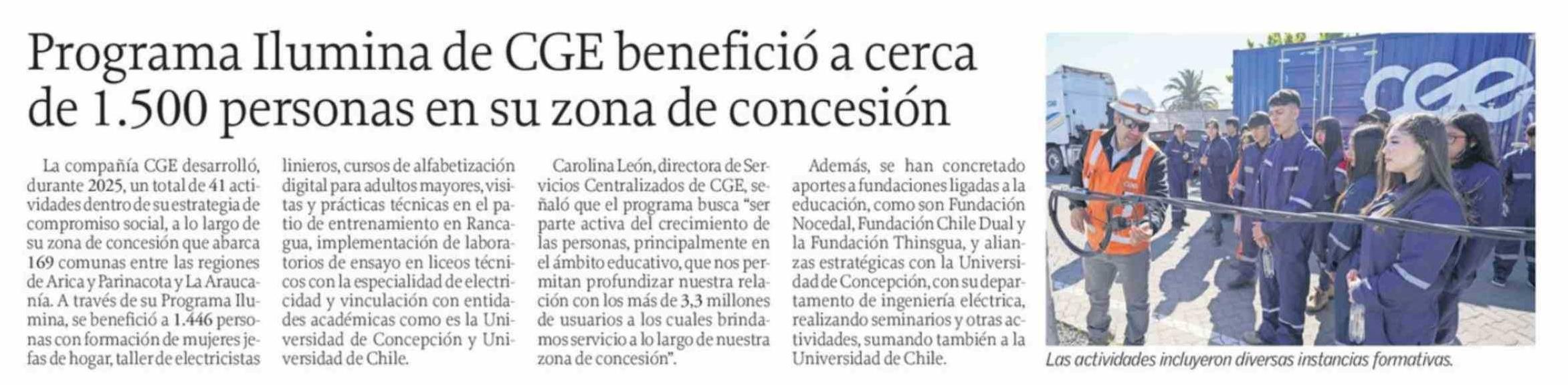 Programa Ilumina de CGE benefició a cerca de 1.500 personas en su zona de concesión