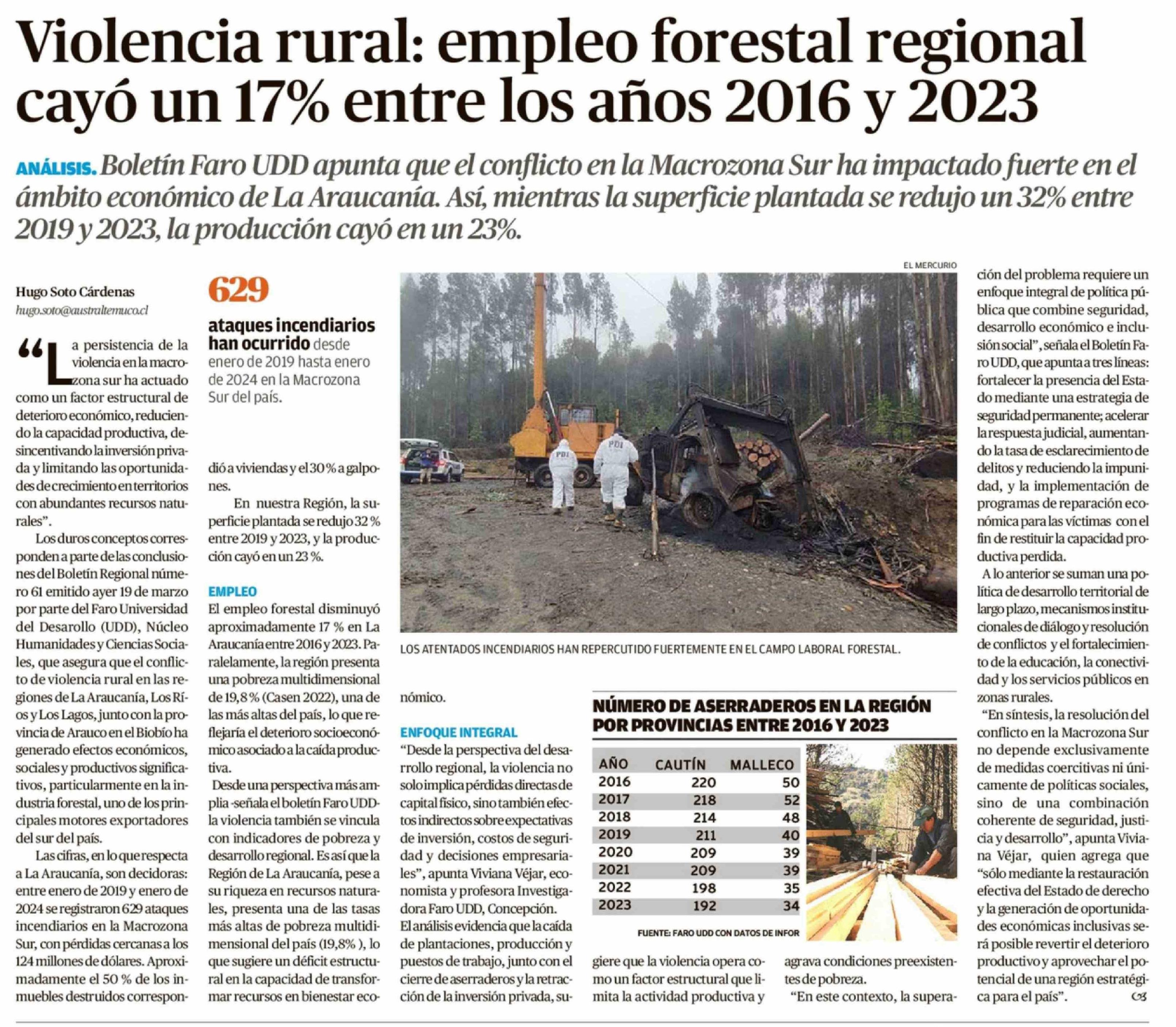 Violencia rural: empleo forestal regional cayó un 17% entre los años 2016 y 2023