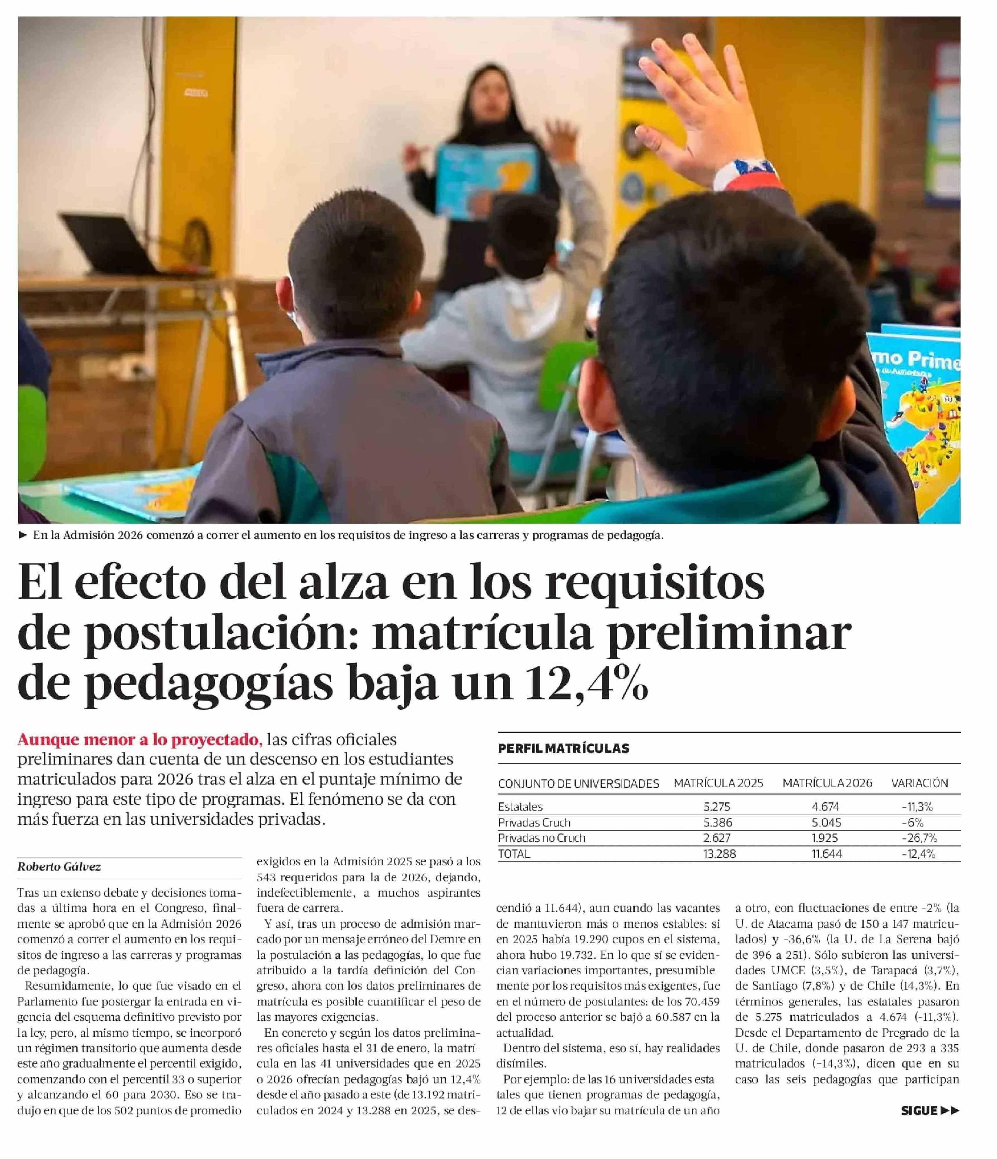 El efecto del alza en los requisitos de postulación: matrícula preliminar de pedagogías baja un 12,4%