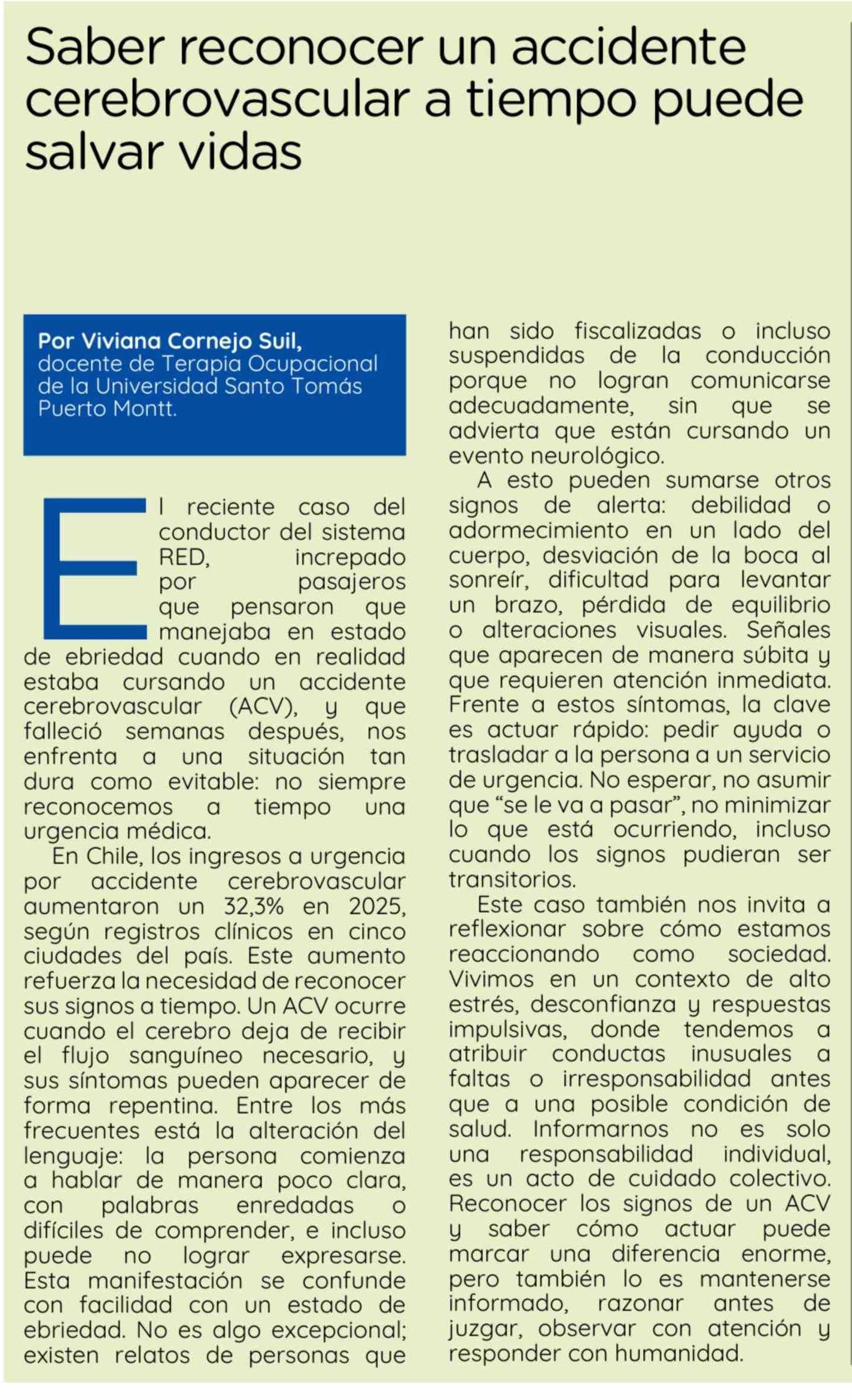 Columnas de Opinión: Saber reconocer un accidente cerebrovascular a tiempo puede salvar vidas