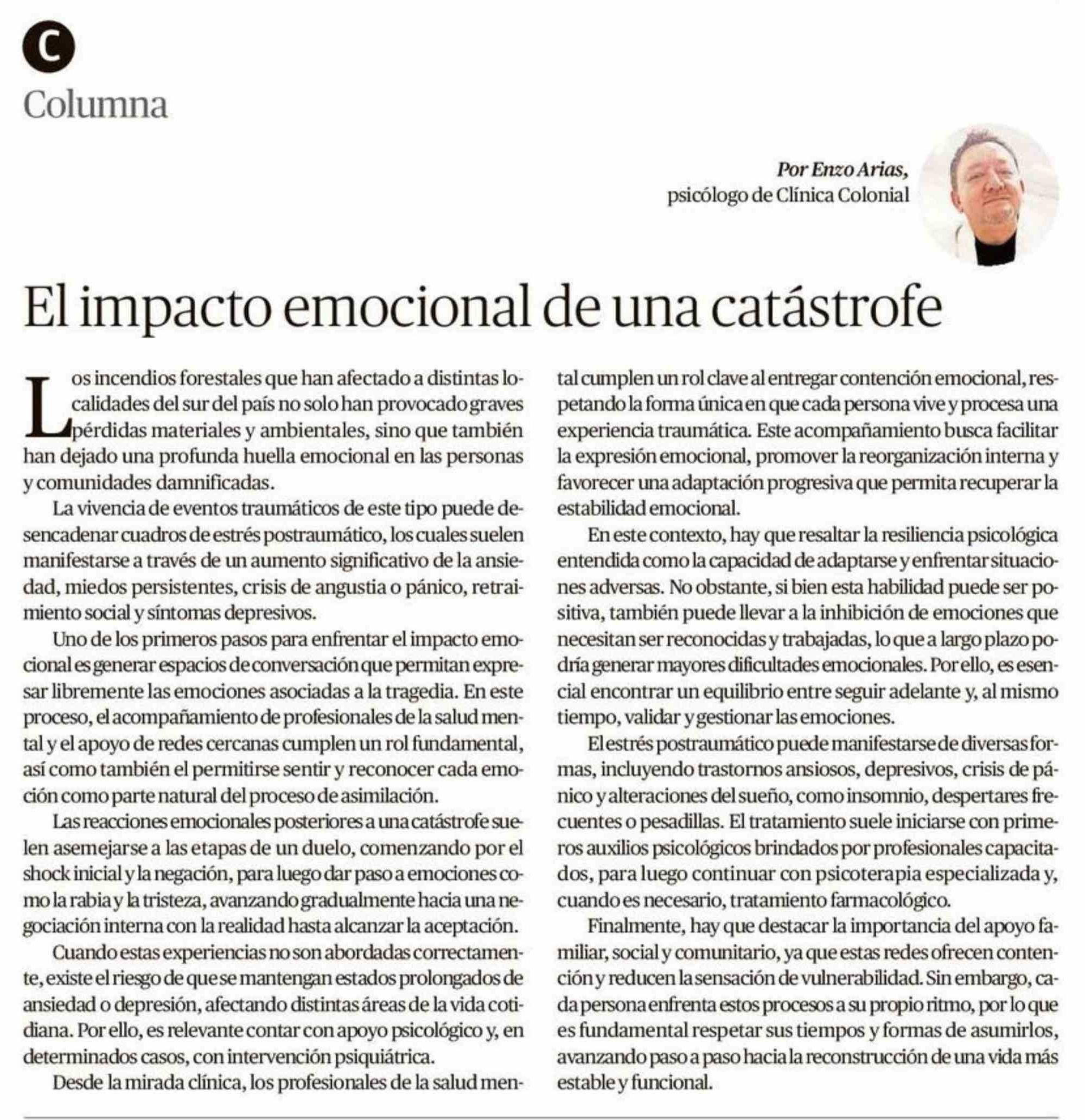 Columnas de Opinión: El impacto emocional de una catástrofe
