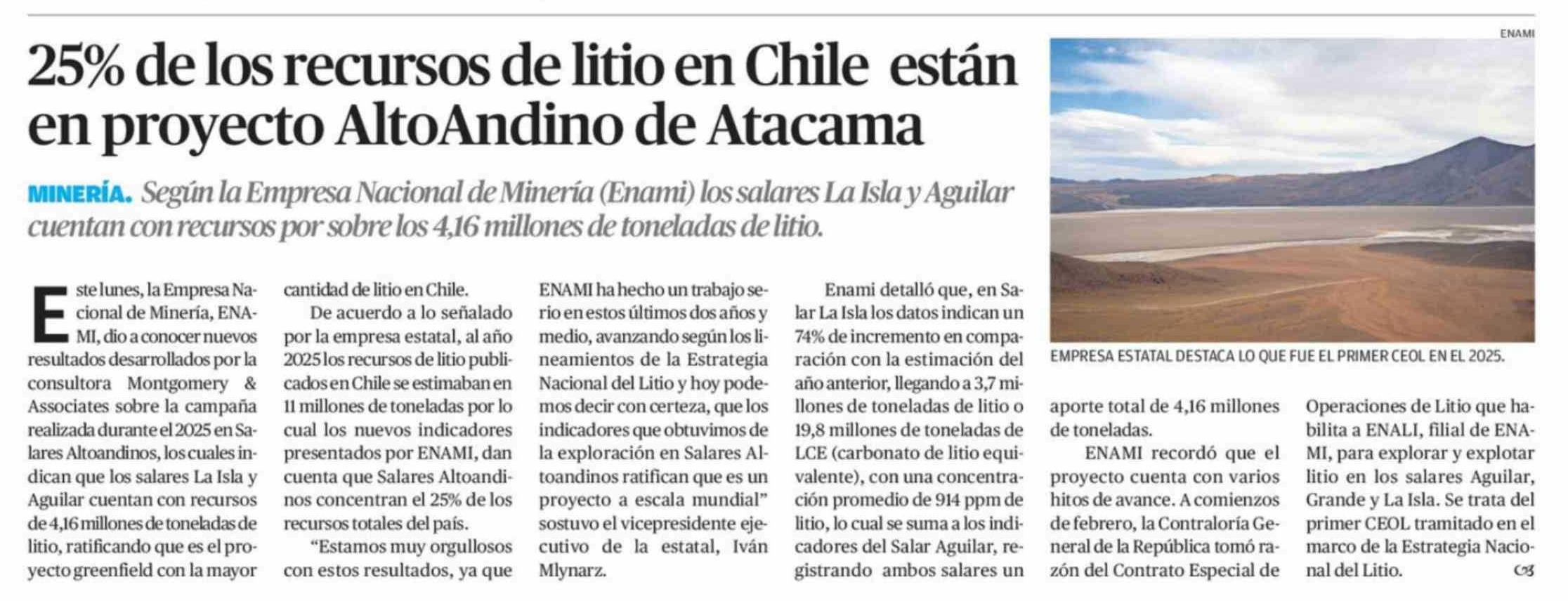 25% De los recursos de litio en Chile están en proyecto AltoAndino de Atacama