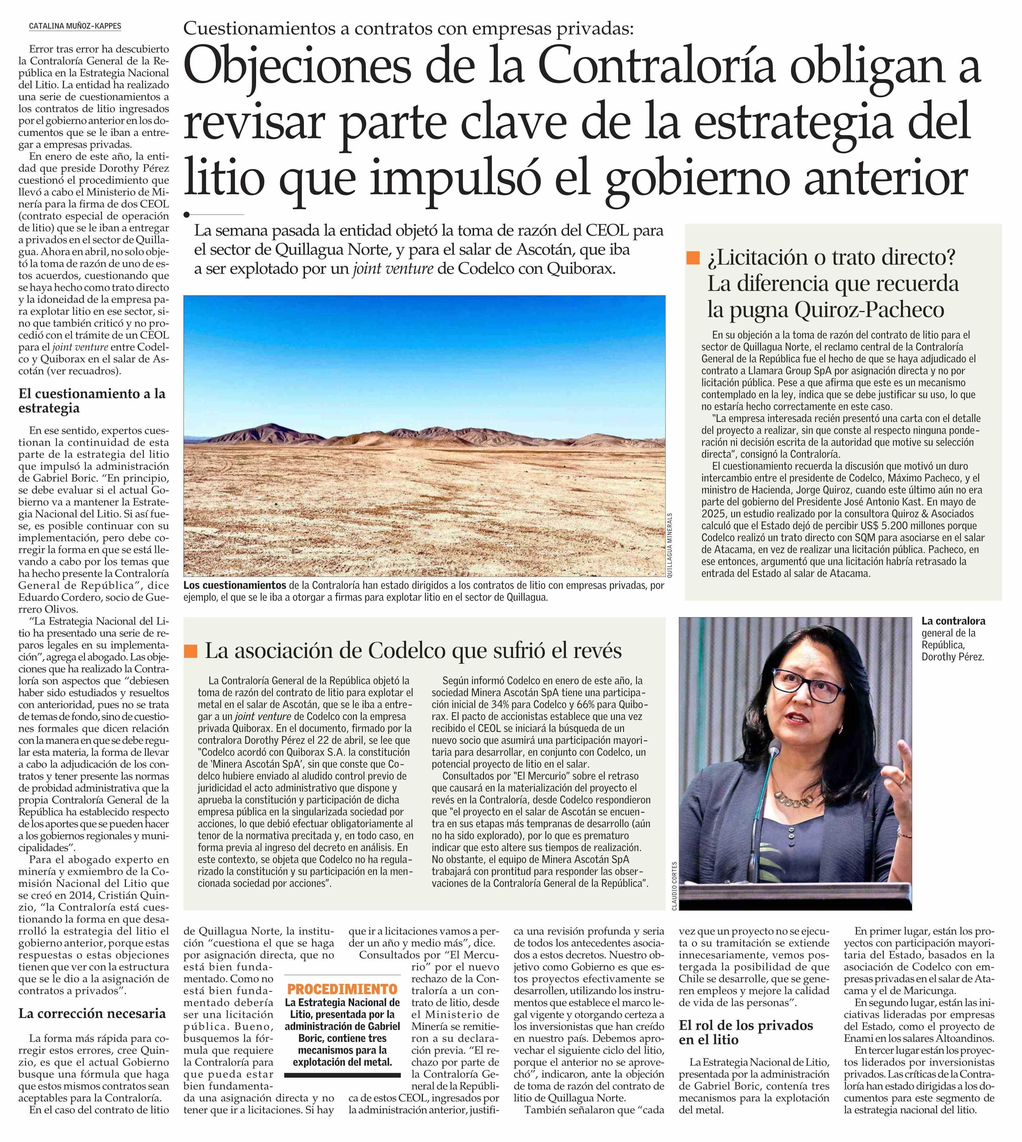 Objeciones de la Contraloría obligan a revisar parte clave de la estrategia del litio que impulsó el gobierno anterior