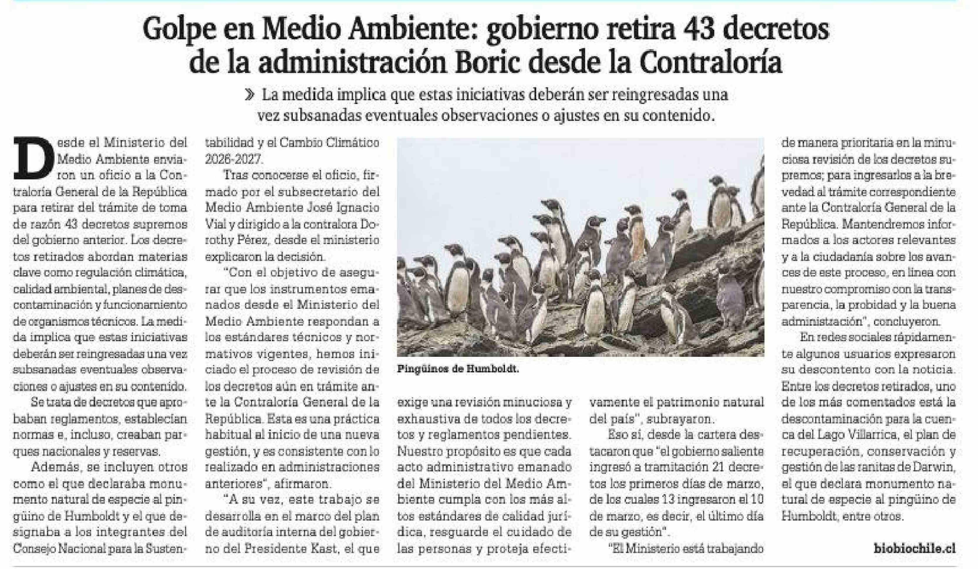 Golpe en Medio Ambiente: gobierno retira 43 decretos de la administración Boric desde la Contraloría