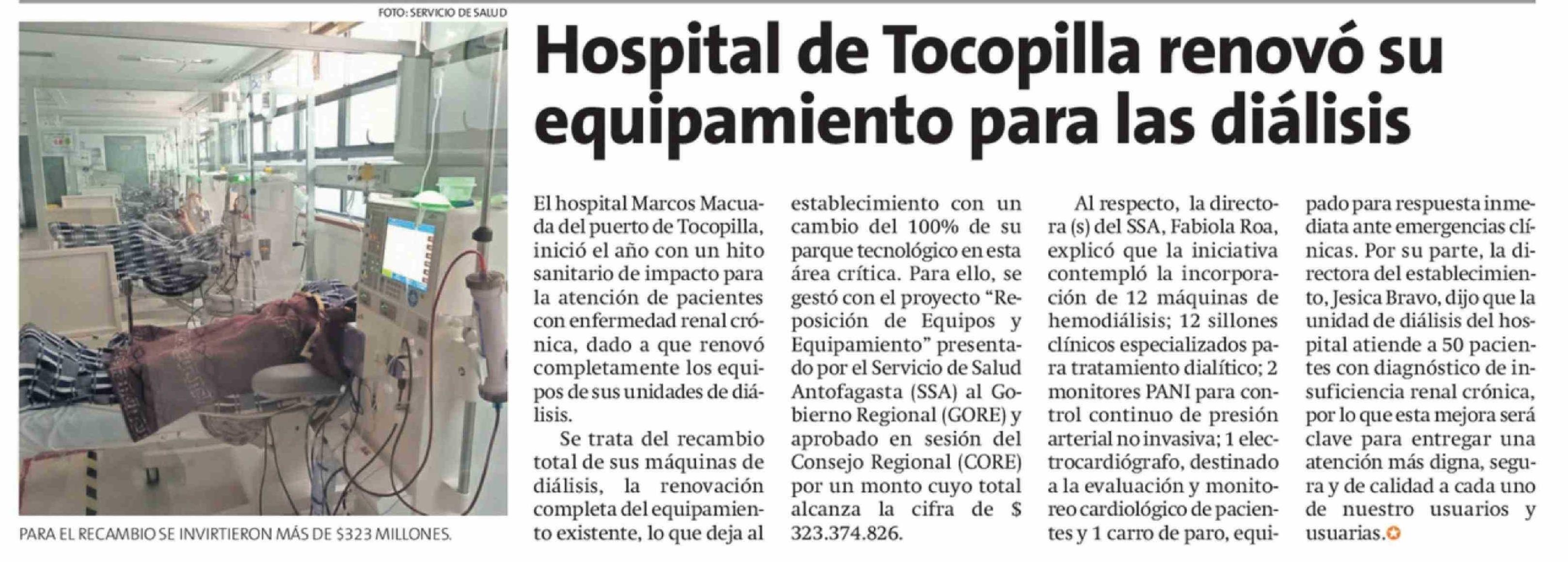 Hospital de Tocopilla renovó su equipamiento para las diálisis
