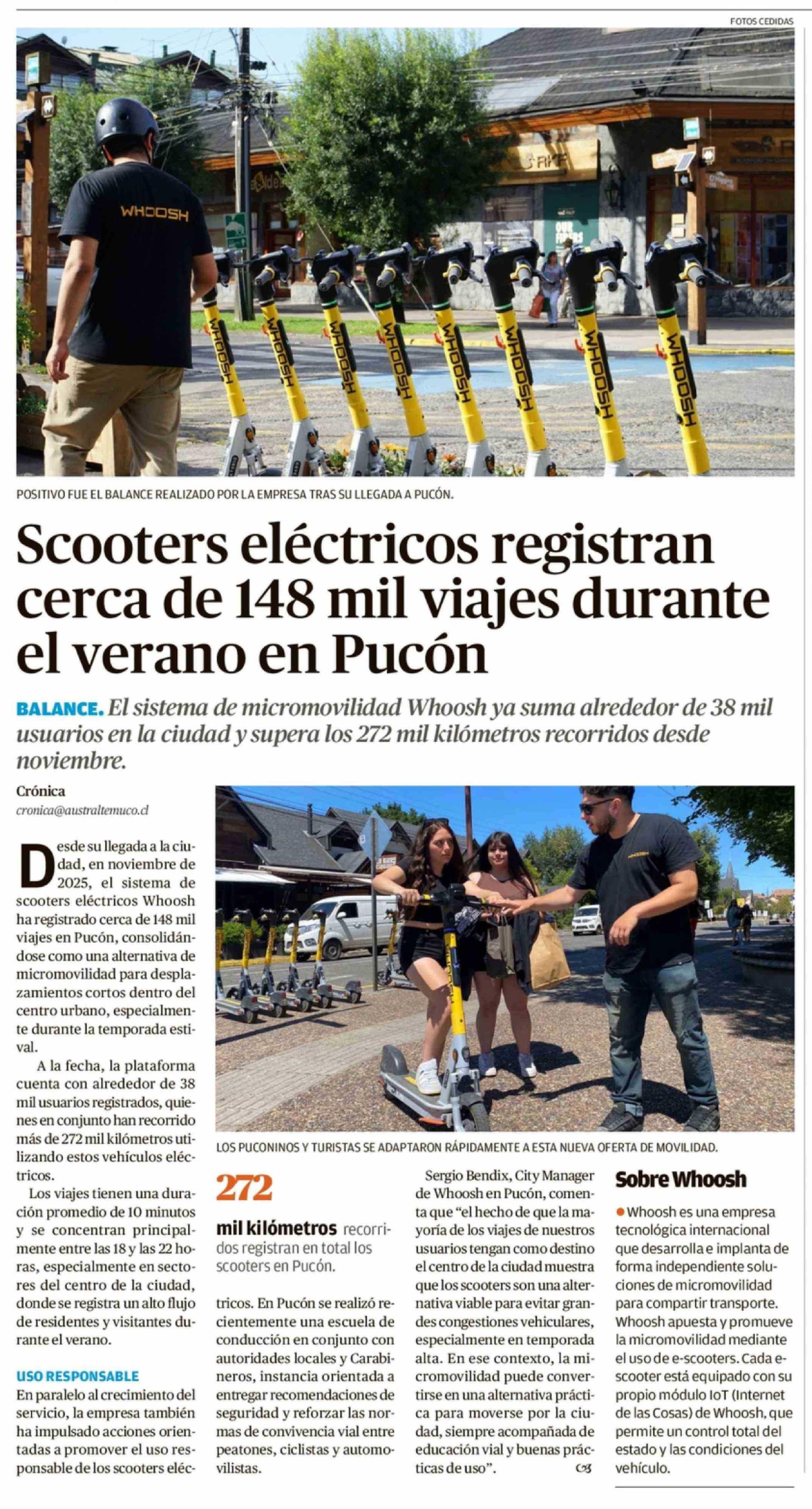 Scooters eléctricos registran cerca de 148 mil viajes durante el verano en Pucón