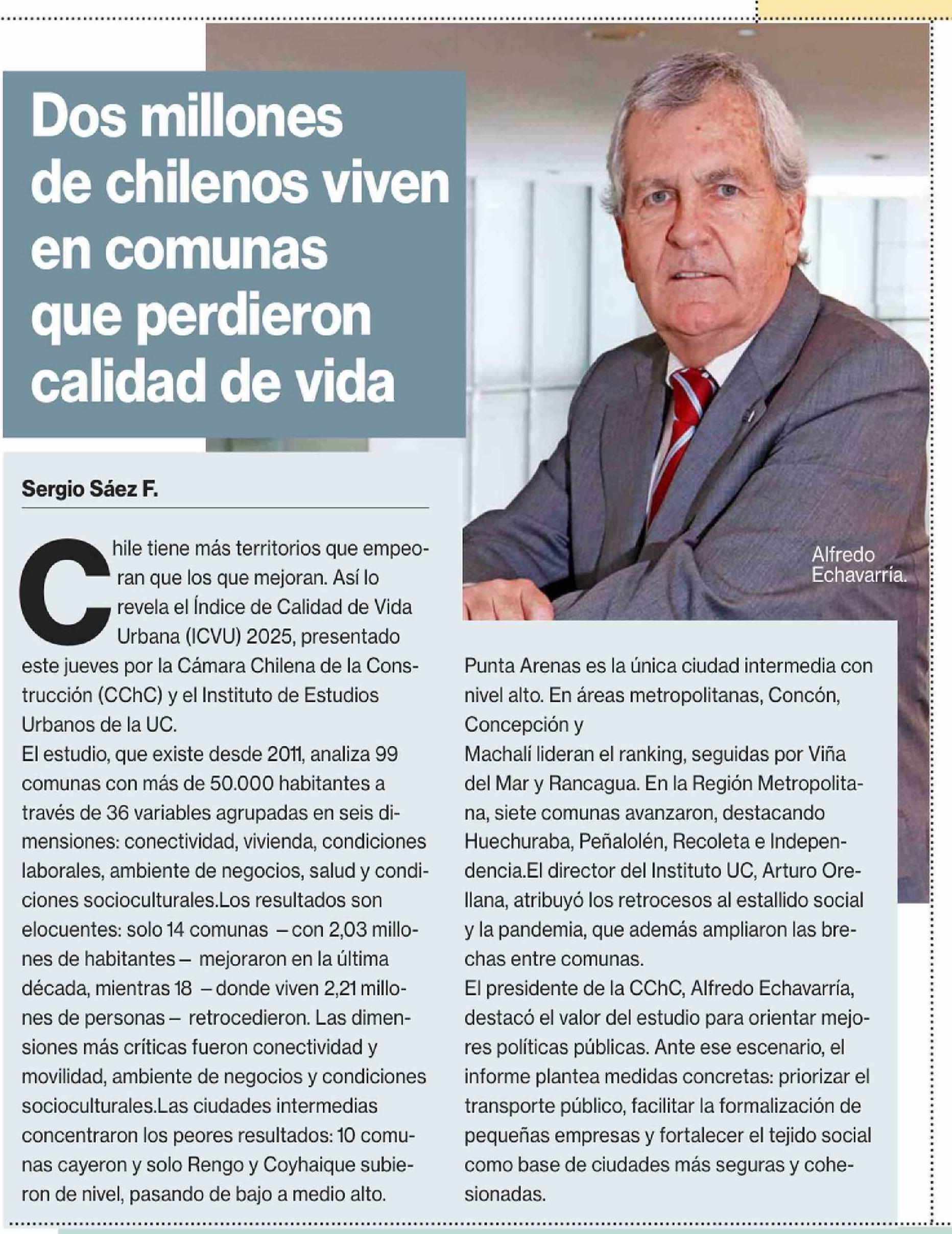 Dos millones de chilenos viven en comunas que perdieron calidad de vida