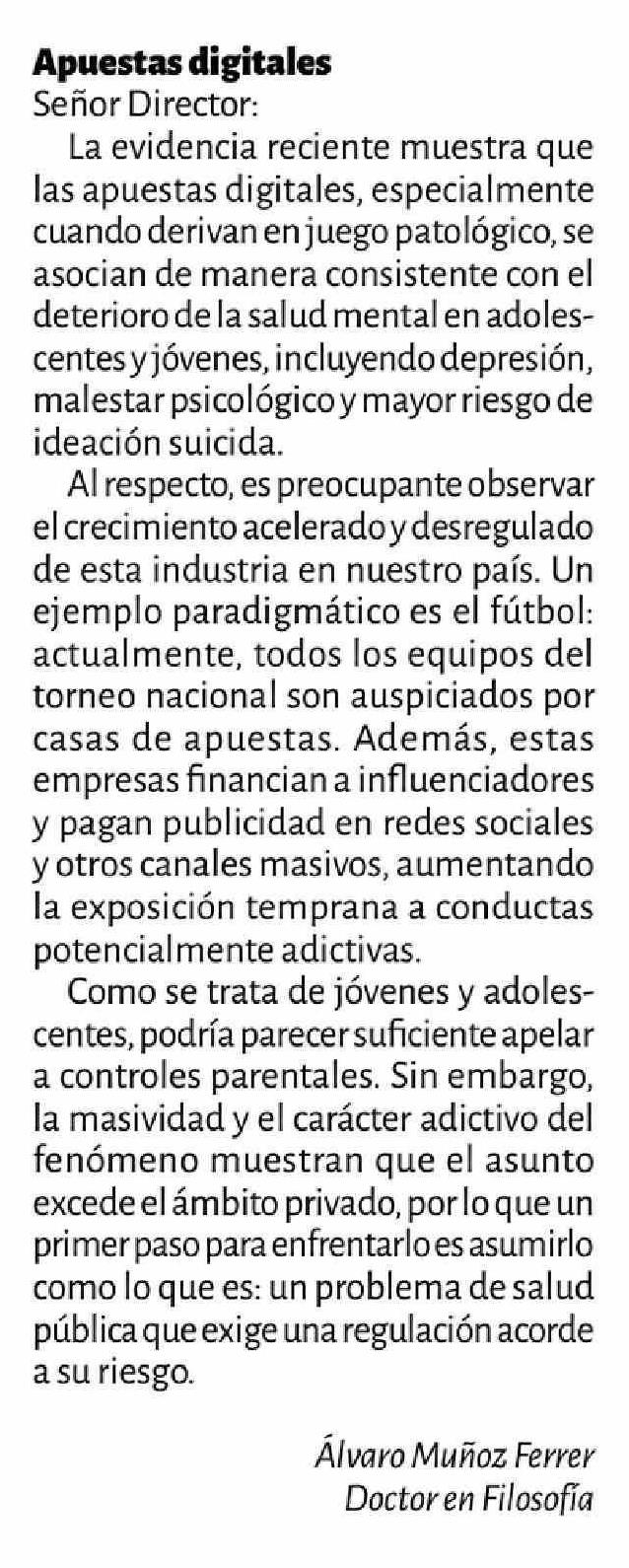 CARTAS: Apuestas digitales