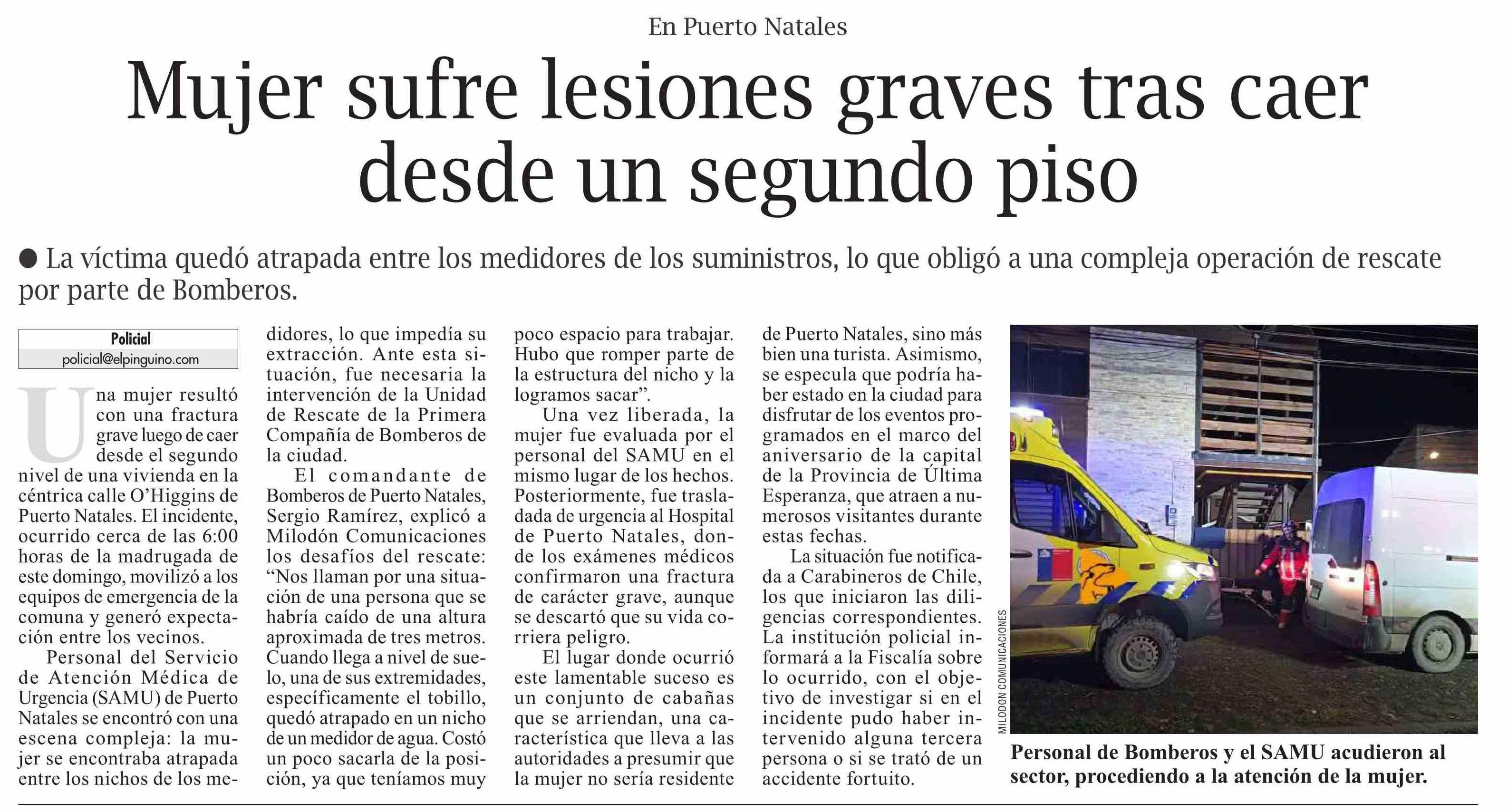 Mujer sufre lesiones graves tras caer desde un segundo piso