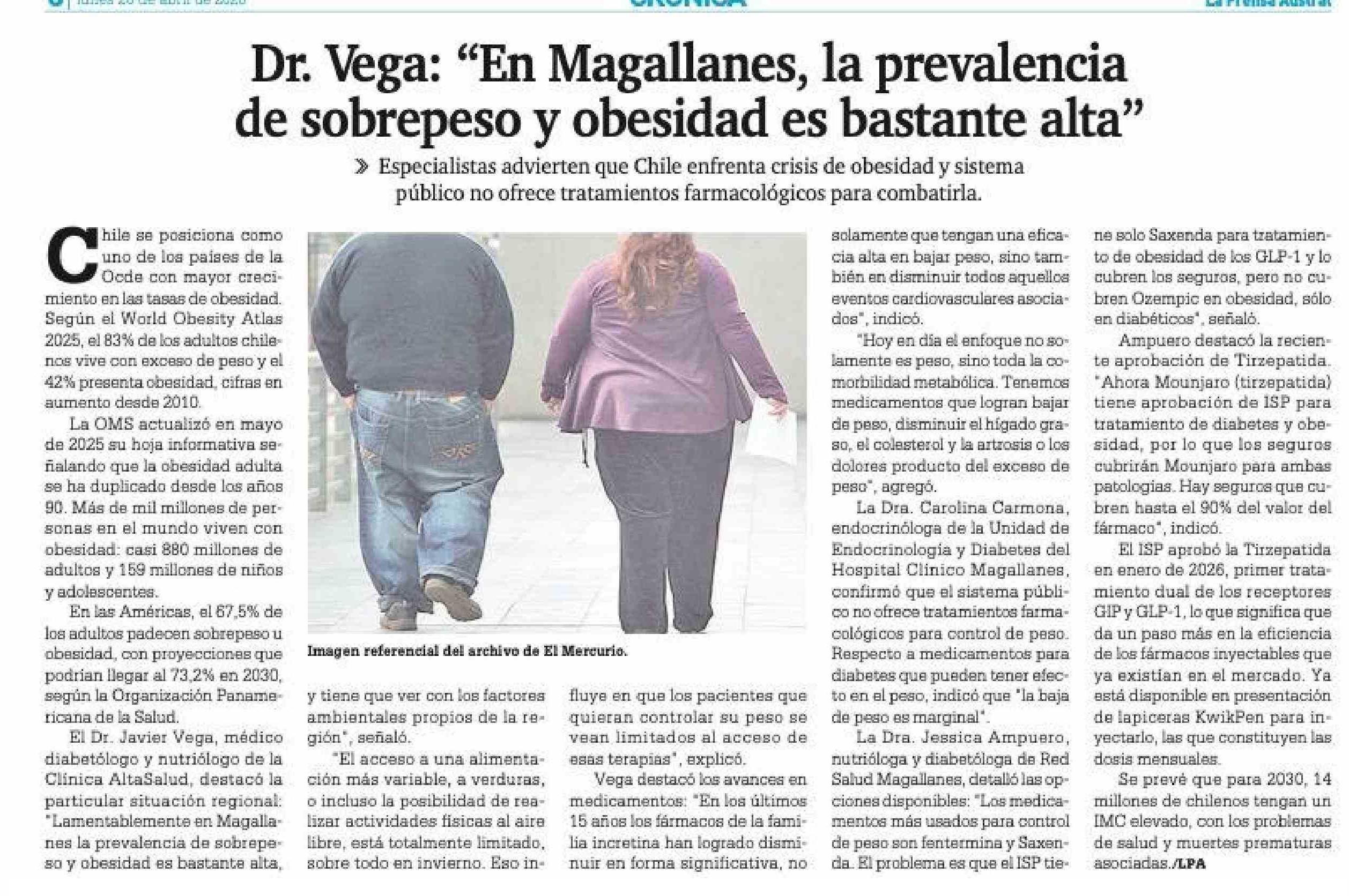 Dr. Vega: “En Magallanes, la prevalencia de sobrepeso y obesidad es bastante alta”
