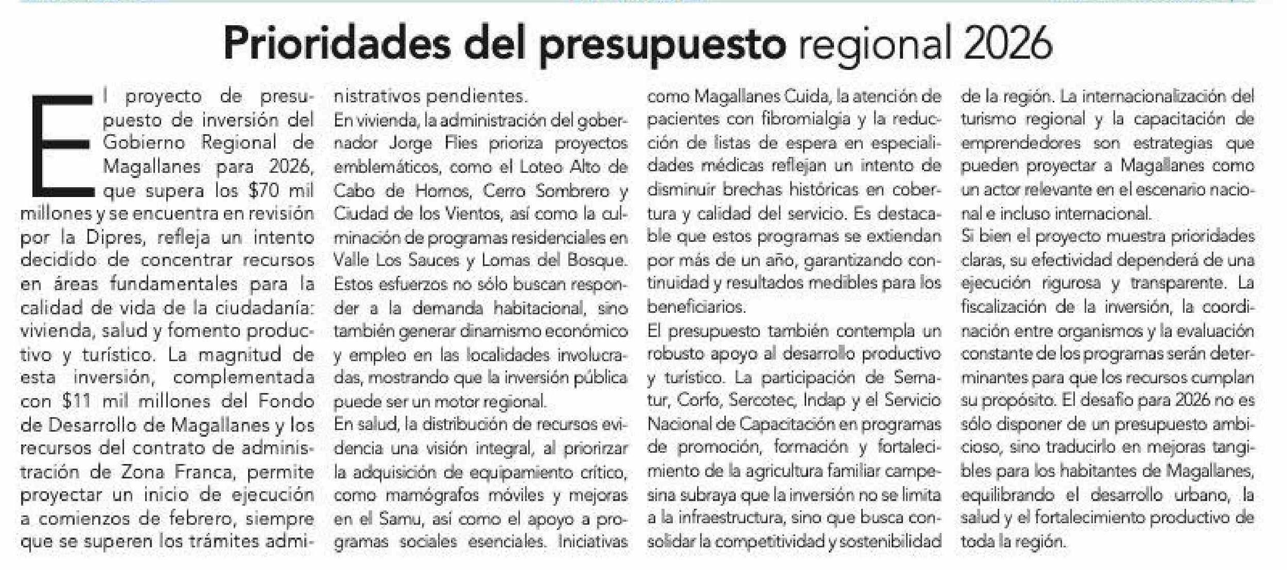 Editorial: Prioridades del presupuesto regional 2026