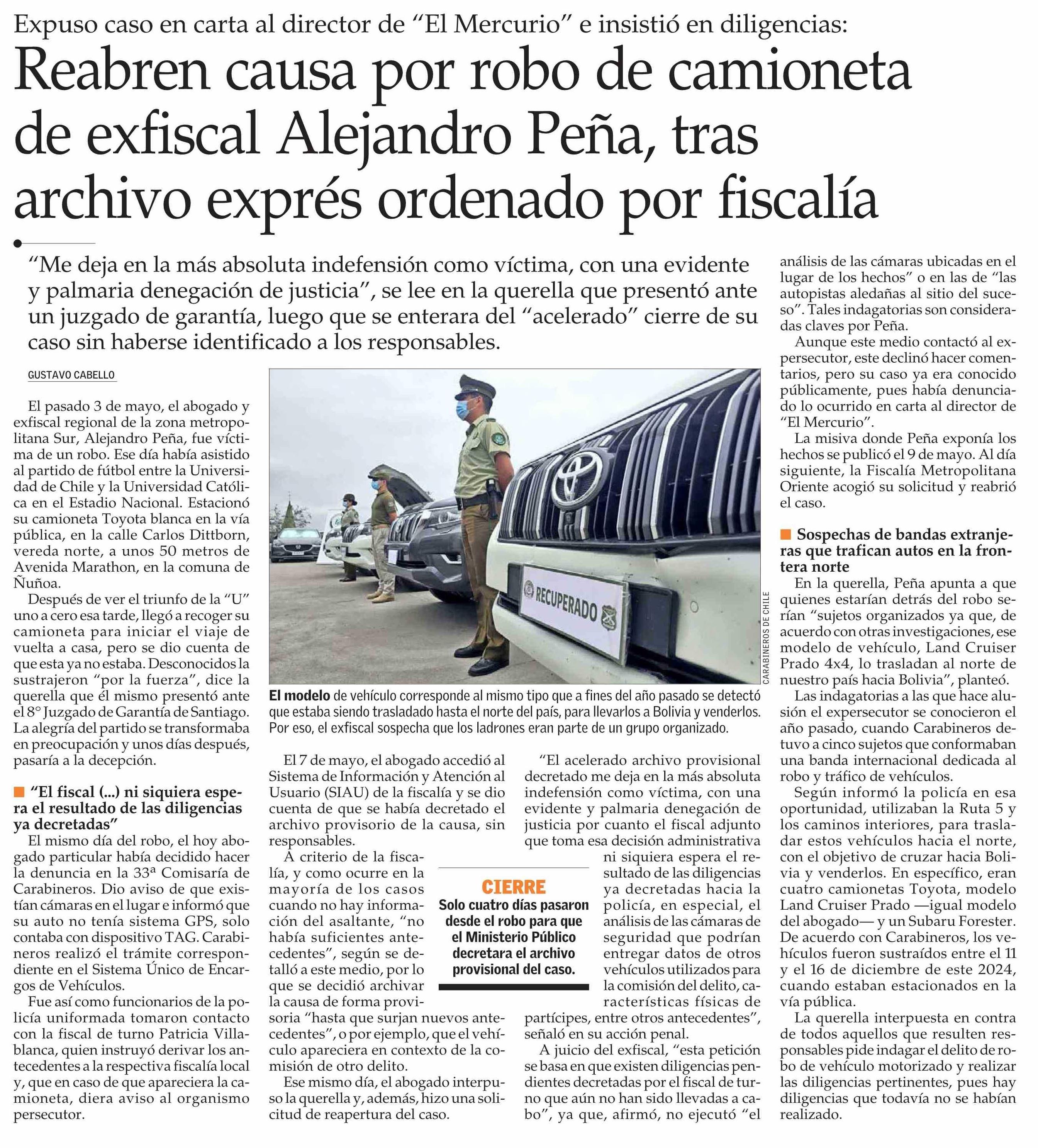 Reabren causa por robo de camioneta de exfiscal Alejandro Peña, tras archivo exprés ordenado por fiscalía