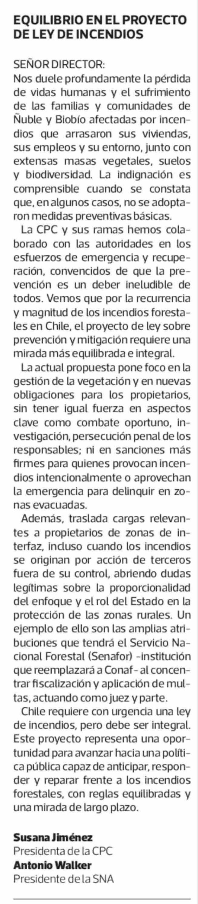 Cartas: EQUILIBRIO EN EL PROYECTO DE LEY DE INCENDIOS