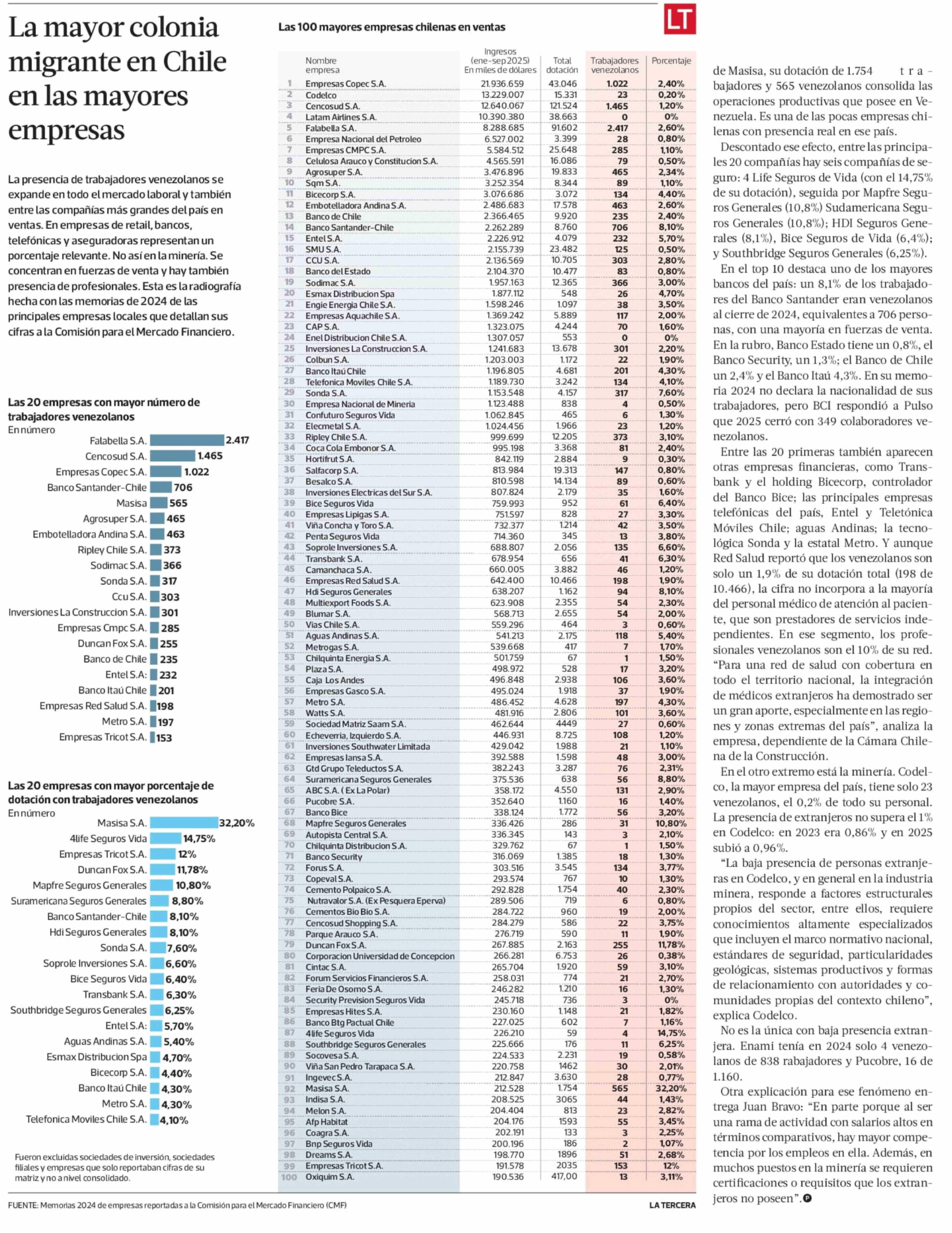 La presencia venezolana en las 100 mayores empresas de Chile