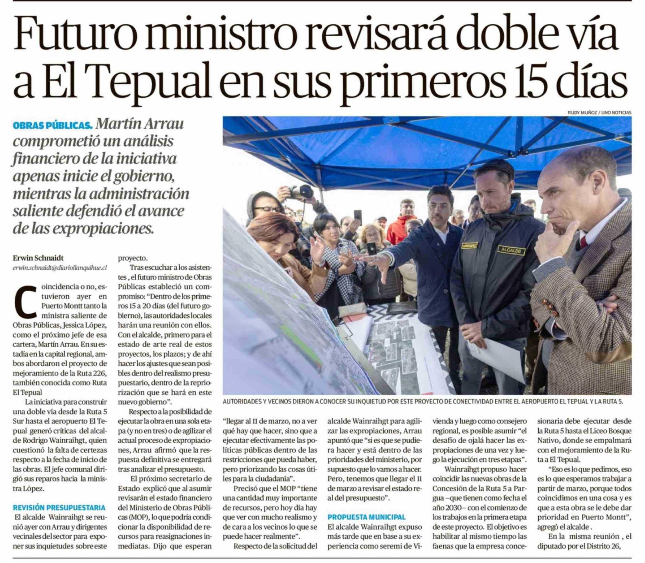Futuro ministro revisará doble vía a El Tepual en sus primeros 15 días