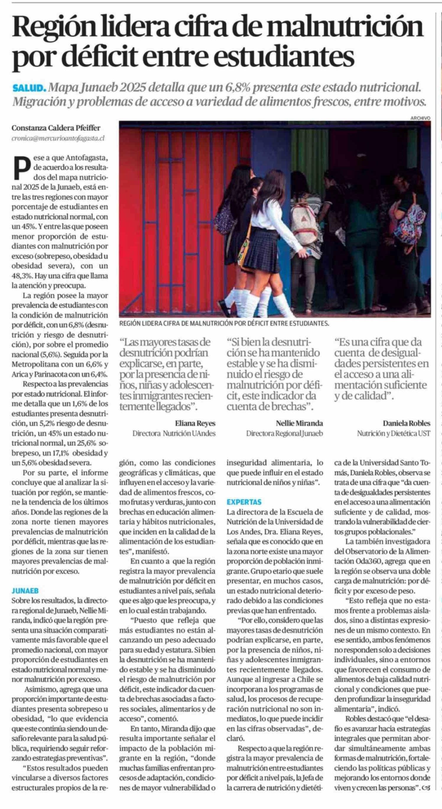 Región lidera cifra de malnutrición por déficit entre estudiantes