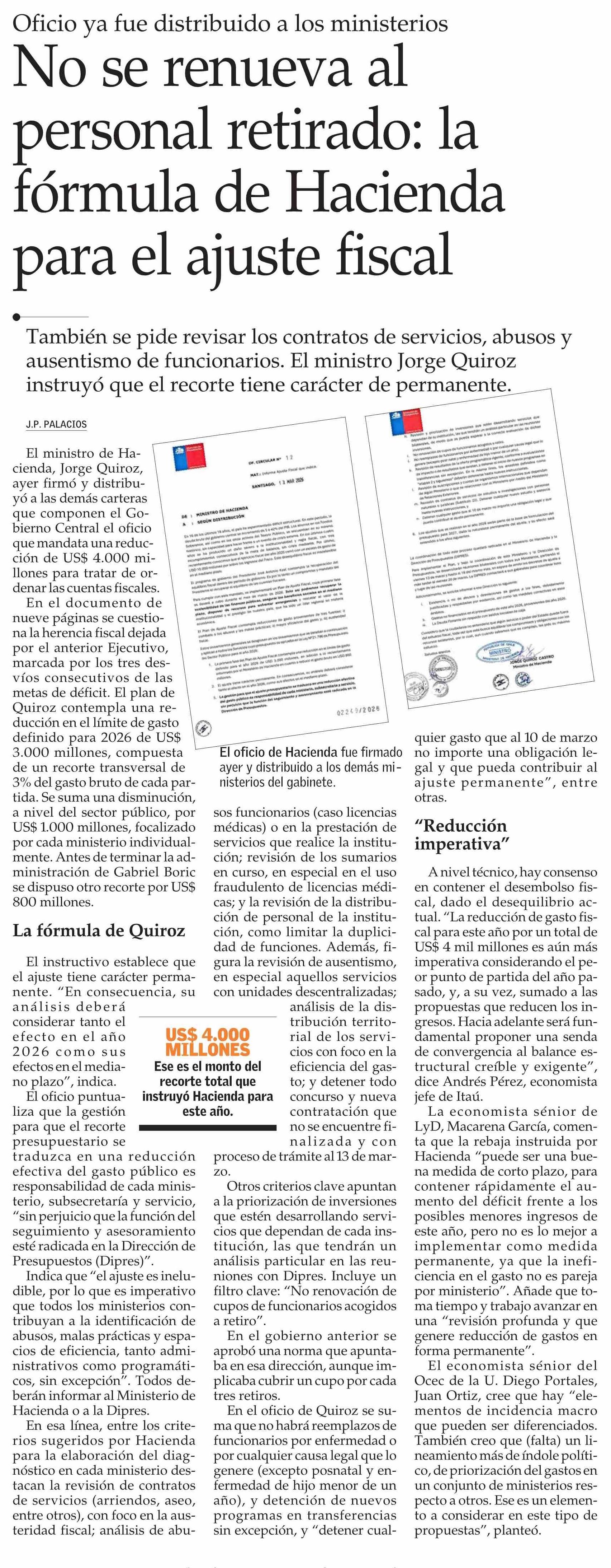Título: No se renueva al personal retirado: la fórmula de Hacienda para el ajuste fiscal