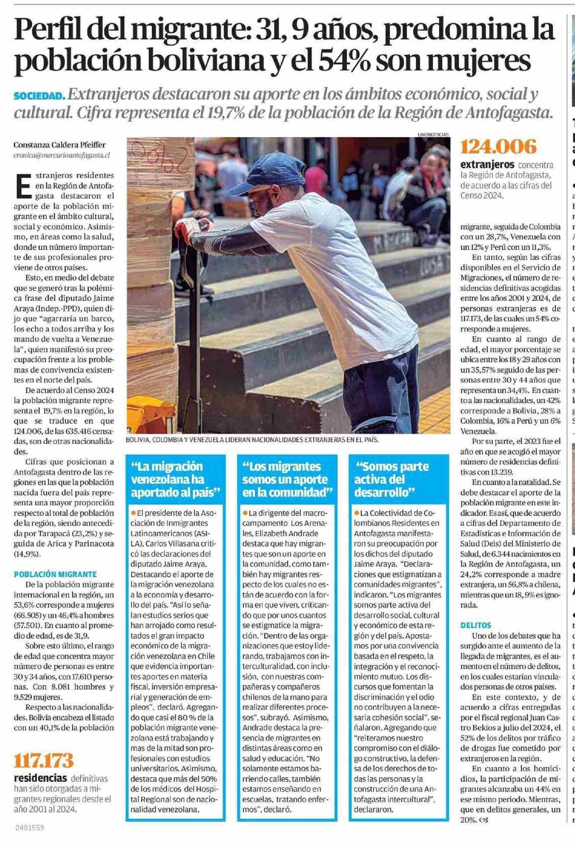 Perfil del migrante: 31, 9 años, predomina la población boliviana y el 54% son mujeres