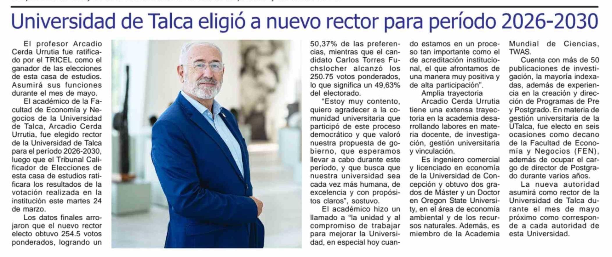 Columnas de Opinión: Universidad de Talca eligió a nuevo rector para período 2026-2030