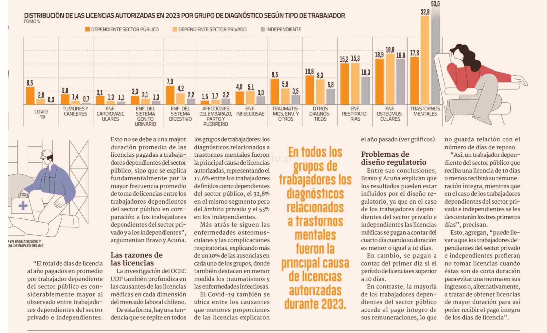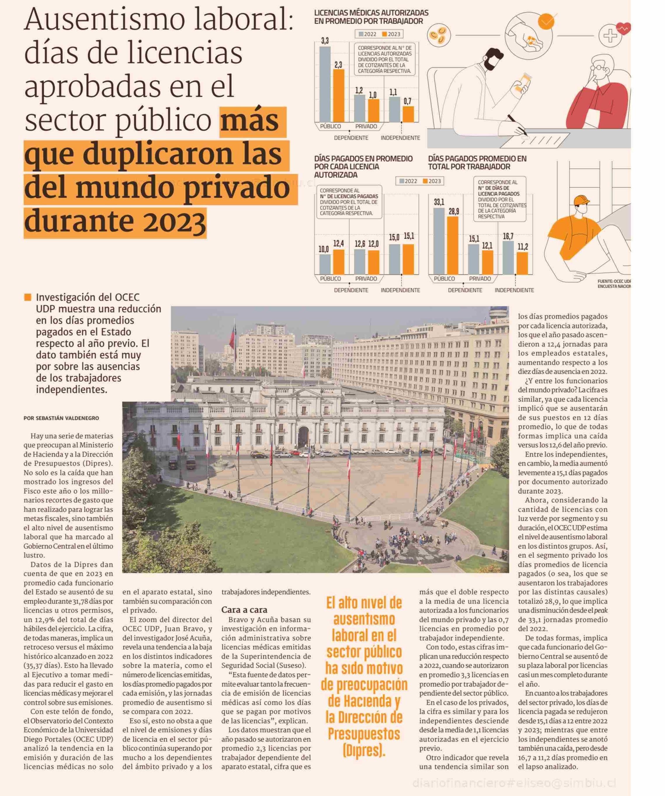 Ausentismo laboral: días de licencias aprobadas en el sector público más que duplicaron las del mundo privado durante 2023