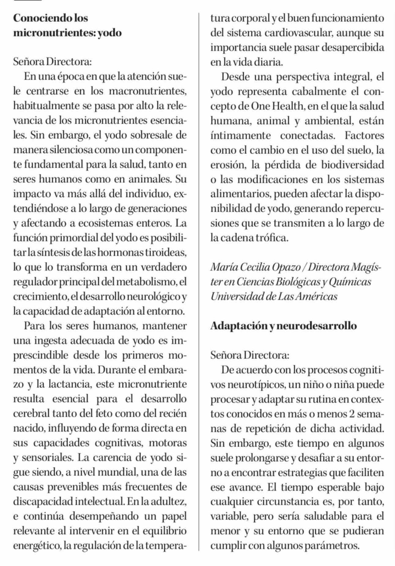 Cartas: Conociendo los micronutrientes: yodo