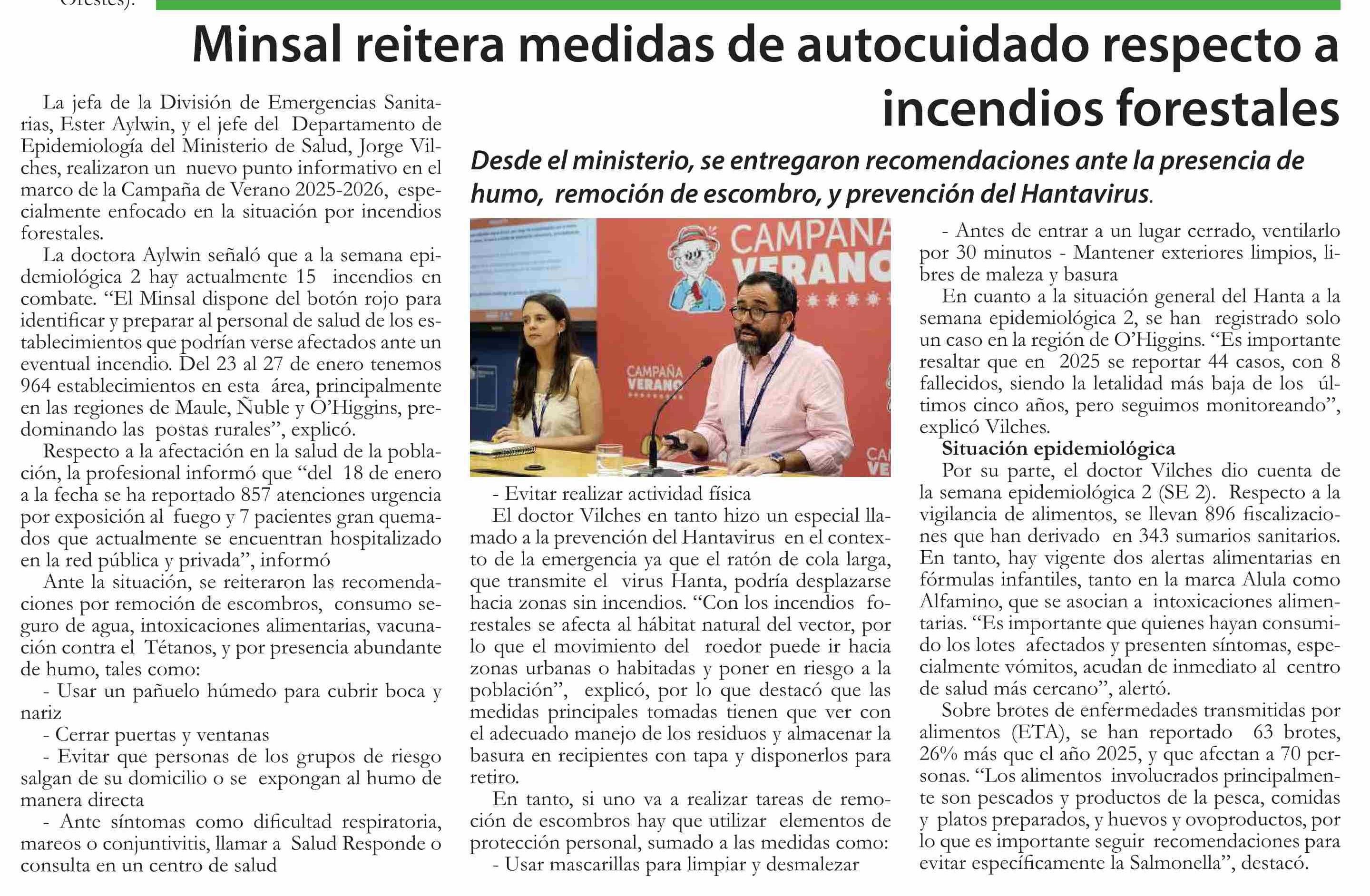 Minsal reitera medidas de autocuidado respecto a incendios forestales